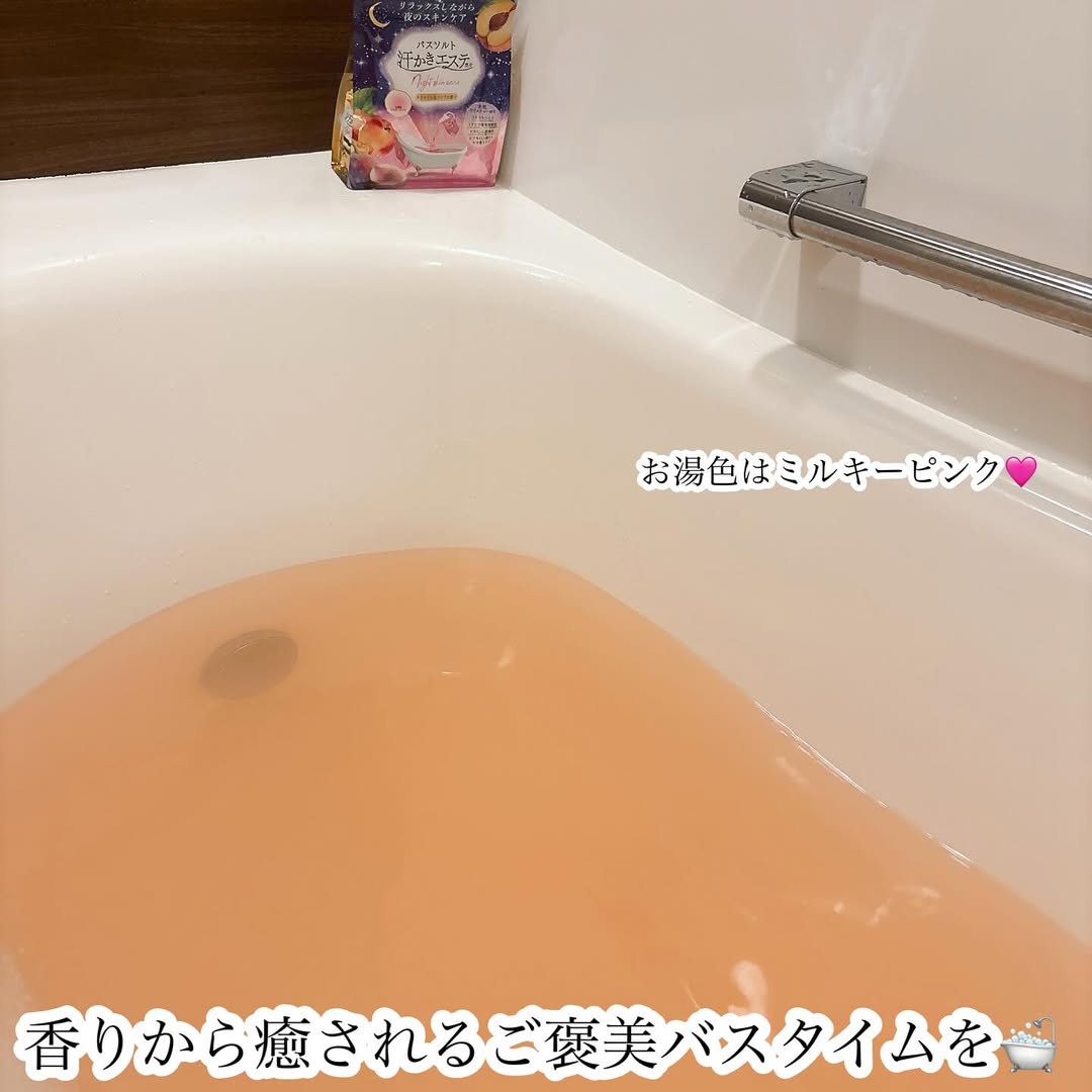 【もぎたてネクタリン×完熟フィグ🍑🍇】 甘くて爽やかな香りに包まれる夜のバスタイム🫧✨ 一日の終わりにほっとできる香りと、 ミルキーピンクのお湯にとろけていく時間がたまらない🛁♡ 5種のうるおい成分※配合で、 お風呂上がりの肌もつっぱらず、なめらか感が続く気がします☺️ スギ薬局限定の「汗かきエステ気分 ナイトスキンケア」で、 香りから癒されるご褒美バスタイムを💐 ※ミルクセラミド(スフィンゴミエリン(牛乳))、ビタミンC誘導体(テトラヘキシルデカンアスコルビル)、 イチジク果実発酵液、ヒアルロン酸Na、モモ葉エキス(すべて保湿成分) #PR #株式会社マックス #汗かきエステ気分 #バスタイム #お風呂 #汗かき #バスソルト #ネクタリンフィグ #汗かきエステ #入浴剤 #スギ薬局 #スギ薬局限定 #ネクタリン #フィグ #マックス #マックスコスメ #monipla #soapmax_fan