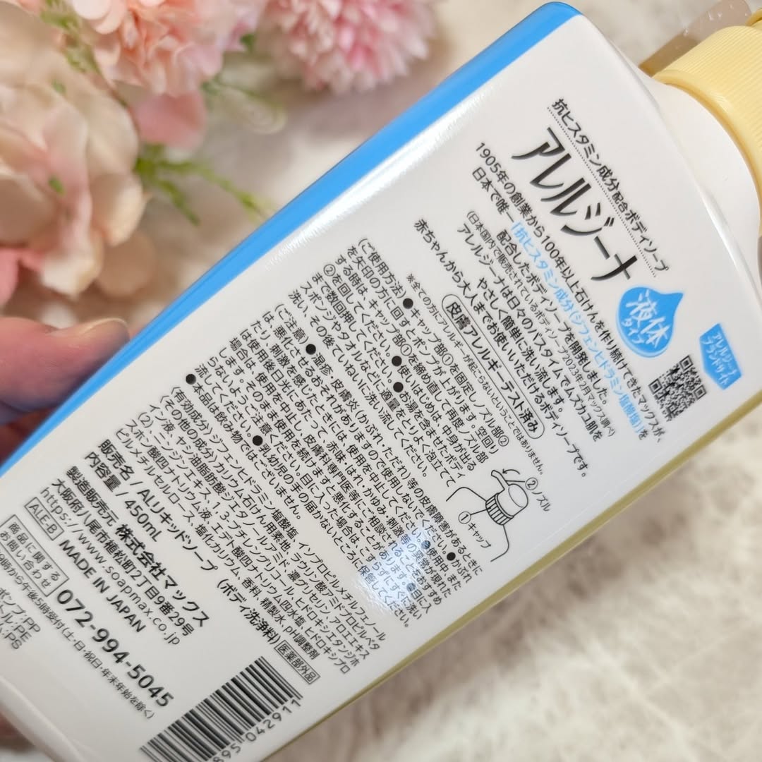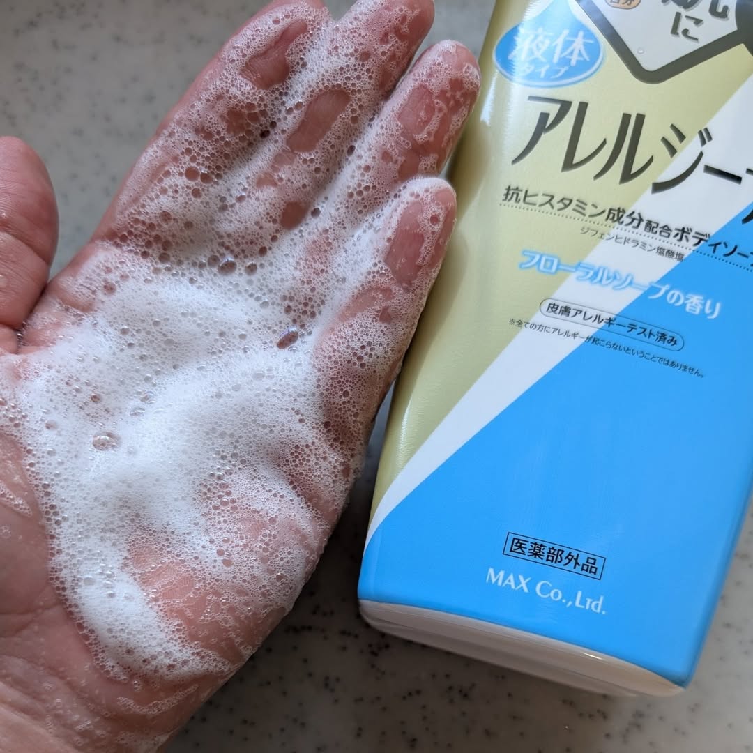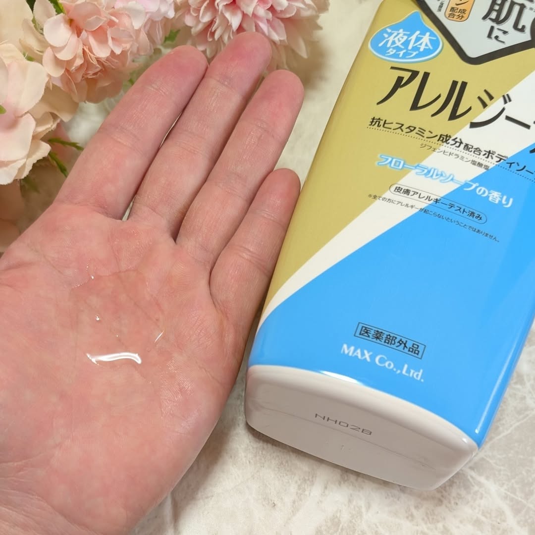 株式会社マックス様より抗ヒスタミン成分配合ボディソープ アレルジーナ お試しさせていただきました💕 日々のバスタイムでムズカユ肌を簡単にやさしく洗えます。 乾燥シーズンになってくると体に痒みが出てくるのでこちらの商品を使用するのが楽しみでした☺️ 大き目のボトルで、上部はポンプタイプになっています。 手に出してみると無色透明でとろみのあるテクスチャーです。 泡立てると思ったよりもしっかり泡立ってくれます。 泡持ち・泡質も良く、体を洗っていてとても気持ちが良いなと思います🎶 洗い流すとしっとり感が残り、でもヌルつきが残る感じでもありませんでした😍 つっぱり感や乾燥を感じないので乾燥による痒みは出にくそうだなと思います✨️ 香りもフローラルソープの香りとありますが、清潔感のあるソープの香りとフローラルの香りのバランスが良く、とても良い香りです😁 とても良い商品を試させていただきありがとうございました😆💕 #PR #株式会社マックス #抗ヒスタミン #抗ヒスタミン成分配合 #抗ヒスタミン成分配合ボディソープ #アレルジーナ #ボディソープ #薬用ボディソープ #ムズカユ肌 #敏感肌 #乾燥肌 #ボディケア #ジフェンヒドラミン塩酸塩 #マックス石鹸 #マックスコスメ #monipla #soapmax_fan