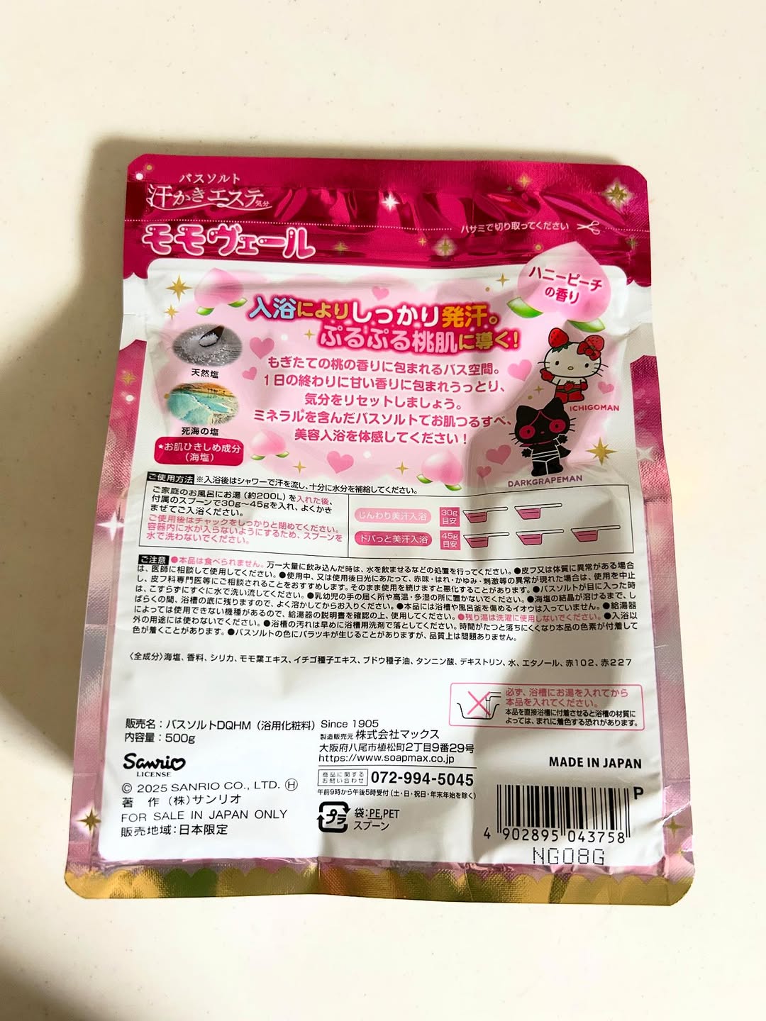#PR #株式会社マックス #汗かきエステ気分 #入浴剤 #バスソルト #お風呂グッズ #サンリオ #ハニーモモ #マックスコスメ #マックス #マックスコスメオンラインショップ #ドンキ #UNY #monipla #soapmax_fan もう!!この香りたまらん!! 桃の甘い香りが気に入りすぎて、毎日長風呂しちゃいます🥰 汗もしっかりかけて、肌の調子が良くなった気がします!! これは毎日やめられませんねー🤤