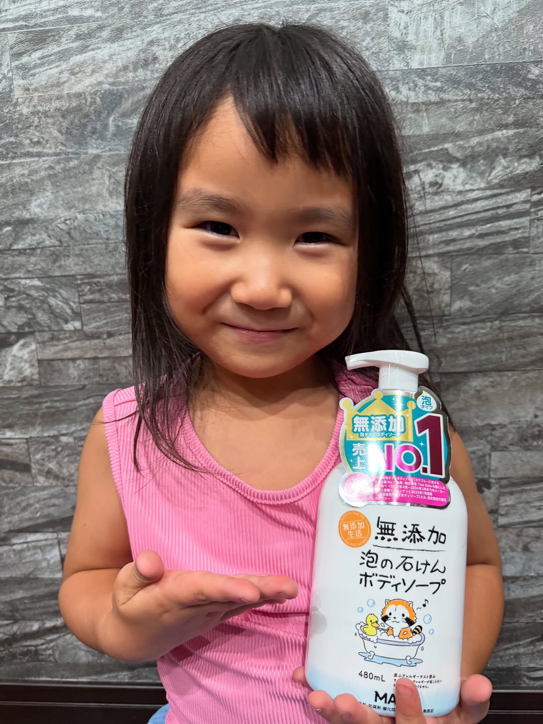 ポンプタイプでクリーミーな泡が出てくるので子供も使いやすい‼️