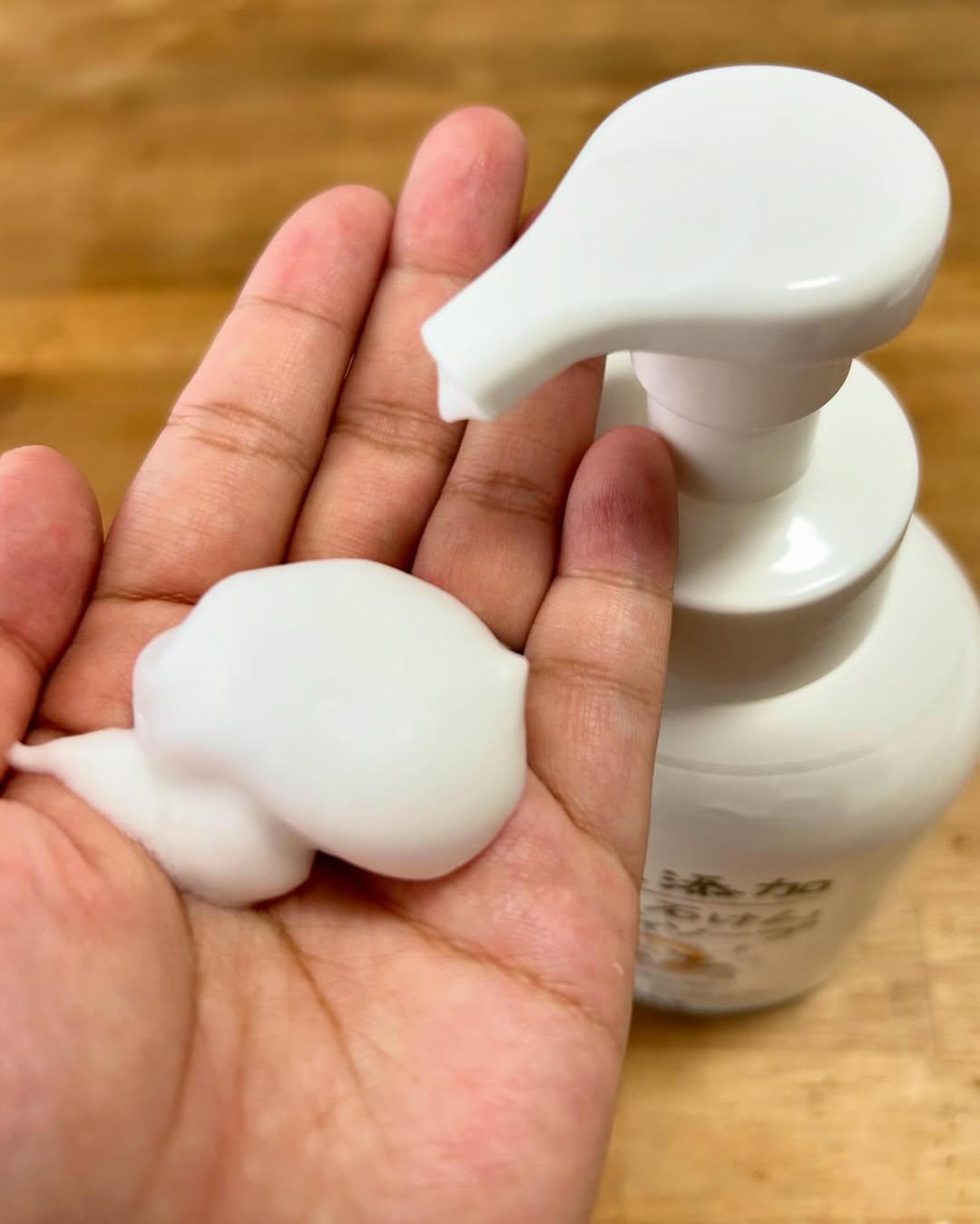 ポンプを押すとふわふわのクリーミーな泡が出てきて、肌をやさしく包み込んでくれます✨