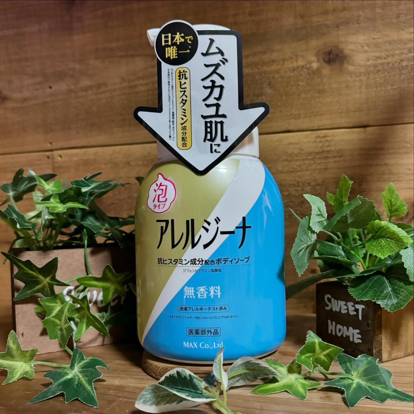 こちらは1905年の創業から100年以上石けんを作り続けてきたマックスが、日本で唯一「抗ヒスタミン成分(ジフェンヒドラミン塩酸塩)」を配合したボディソープ。