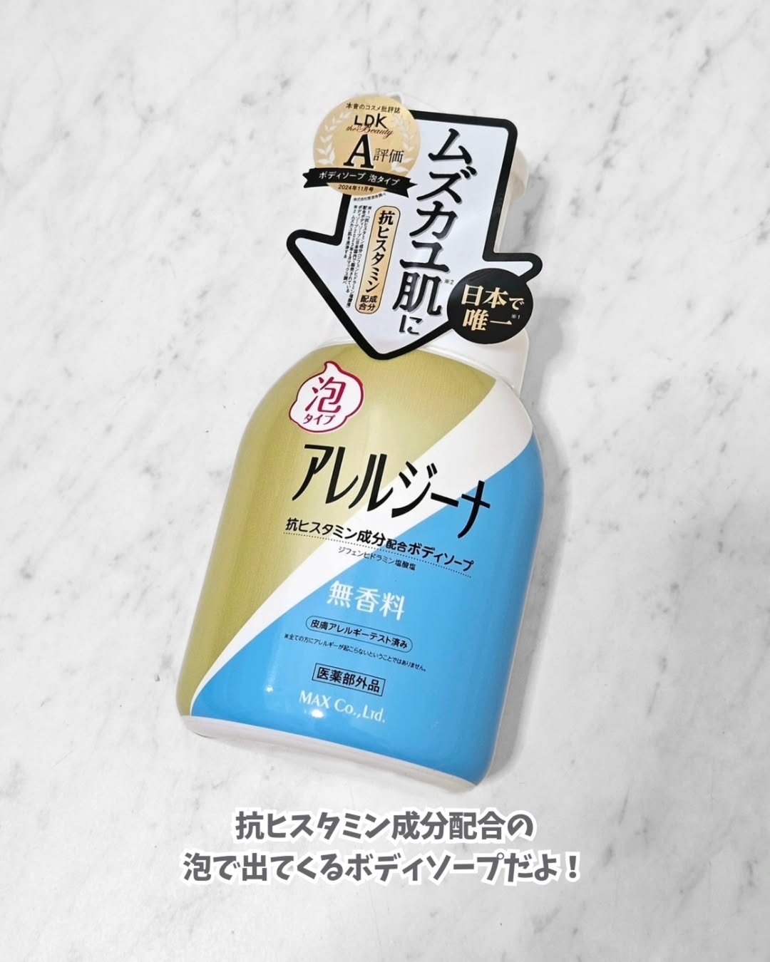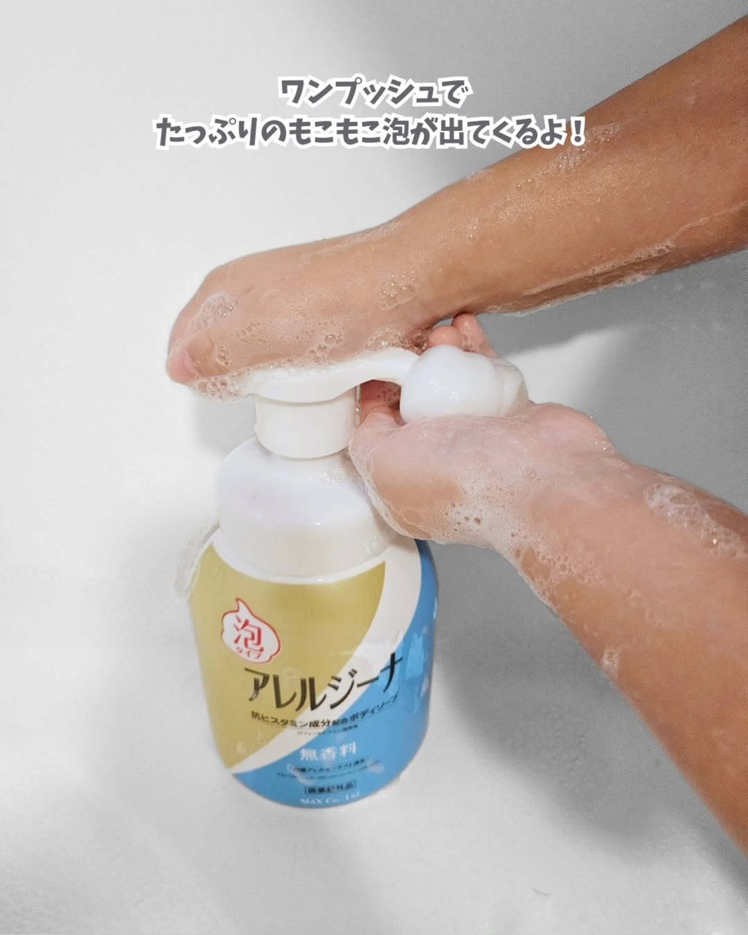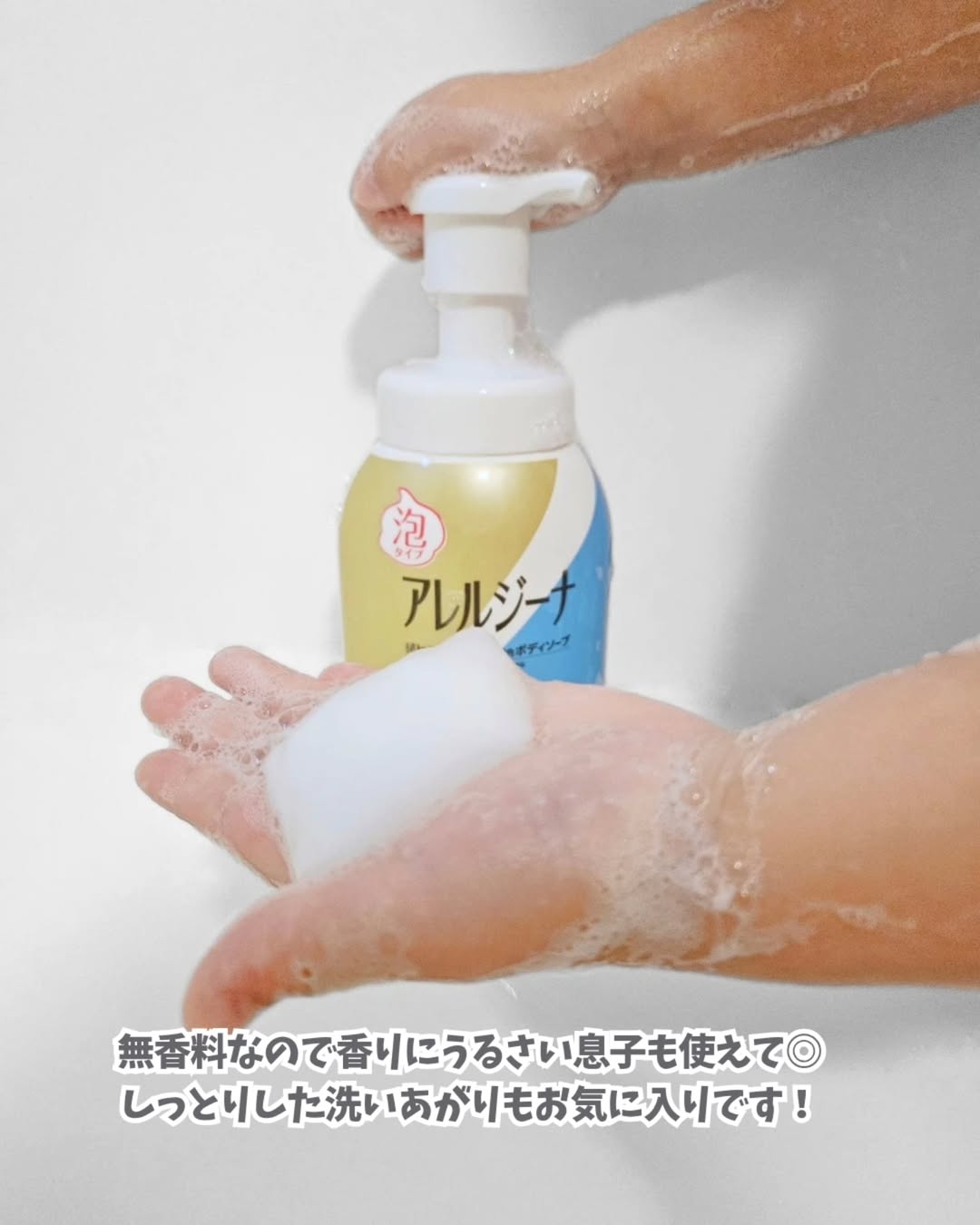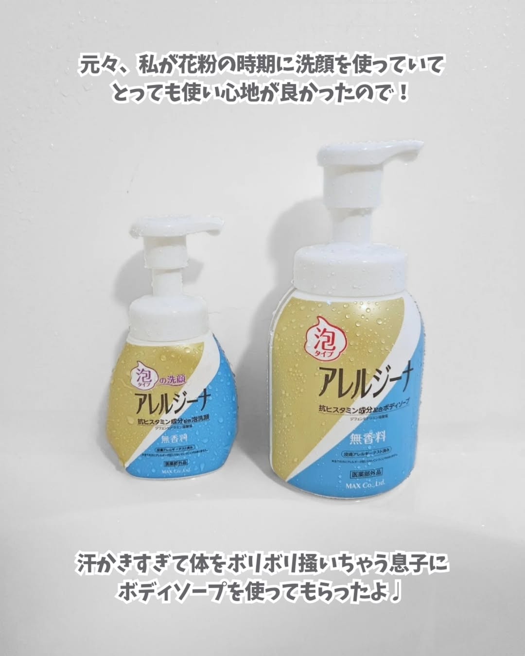 @oyk_mama ﹏ ✍ 最近、少し涼しくなってきて 保育園でも外遊びが増えてきたんだけど… 息子は滝のように汗をかいてて(笑) 毎日お着替えもしてもらってるけど 体をかきむしるのが気になってた…🤔💦 そんなときに思い出したのが 私が花粉の時期に洗顔を使って効果を感じた 抗ヒスタミン成分入りのアレルジーナ✨ 同じシリーズのボディソープがあったので 息子に使ってもらいました💗 ワンプッシュでもこもこ泡がたくさん出るから 優しく洗えるところがお気に入り♩ 無香料なので、香りにうるさい息子も使えて ありがたいです👌 使い初めてからお風呂上がりに体掻いてるの 見なくなったので…効果はあったのかな? 春夏秋は汗をかきすぎ&冬は乾燥しやすくて 年中、体をを痒そうにしてる息子なので… アレルジーナでしっかりケアしてあげたいな☺ ━━━━━━ ∙ʚ ɞ∙ ━━━━━━ アレルジーナ 泡ボディソープ @maxcosme1905 ━━━━━━ ∙ʚ ɞ∙ ━━━━━━ #PR #株式会社マックス #抗ヒスタミン #抗ヒスタミン成分配合 #抗ヒスタミン成分配合ボディソープ #アレルジーナ #ボディソープ #泡ボディソープ #薬用ボディソープ #ムズカユ肌 #敏感肌 #乾燥肌 #ボディケア #ジフェンヒドラミン塩酸塩 #マックス石鹸 #マックスコスメ #monipla #soapmax_fan