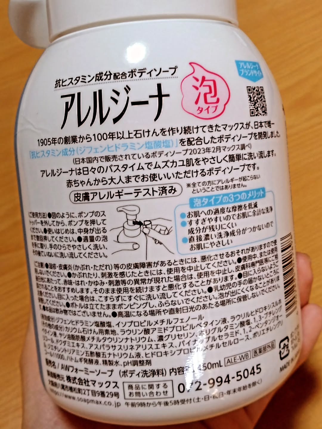 #PR #株式会社マックス #抗ヒスタミン #抗ヒスタミン成分配合 #抗ヒスタミン成分配合ボディソープ #アレルジーナ #ボディソープ #泡ボディソープ #薬用ボディソープ #ムズカユ肌 #敏感肌 #乾燥肌 #ボディケア #ジフェンヒドラミン塩酸塩 #マックス石鹸 #マックスコスメ #monipla #soapmax_fan