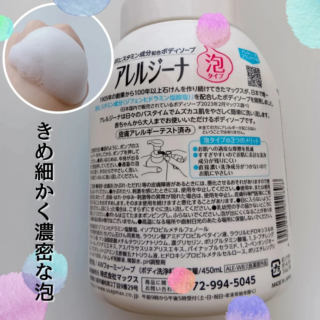 #PR #株式会社マックス #抗ヒスタミン #抗ヒスタミン成分配合 #抗ヒスタミン成分配合ボディソープ #アレルジーナ #ボディソープ #泡ボディソープ #薬用ボディソープ #ムズカユ肌 #敏感肌 #乾燥肌 #ボディケア #ジフェンヒドラミン塩酸塩 #マックス石鹸 #マックスコスメ #monipla #soapmax_fan