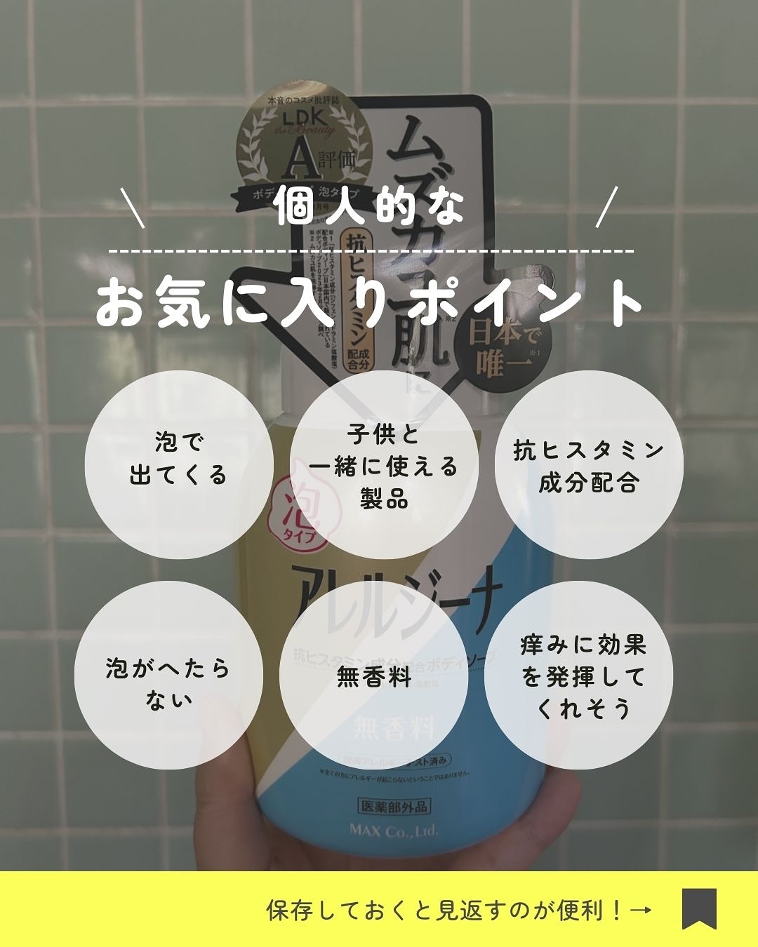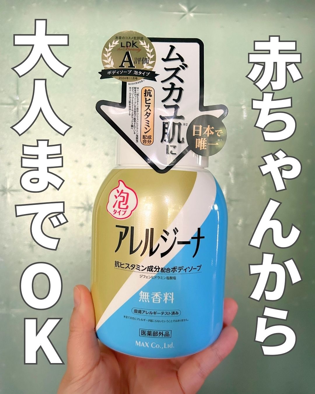 #PR #株式会社マックス #抗ヒスタミン #抗ヒスタミン成分配合 #抗ヒスタミン成分配合ボディソープ #アレルジーナ #ボディソープ #泡ボディソープ #薬用ボディソープ #ムズカユ肌 #敏感肌 #乾燥肌 #ボディケア #ジフェンヒドラミン塩酸塩 #マックス石鹸 #マックスコスメ #monipla #soapmax_fan