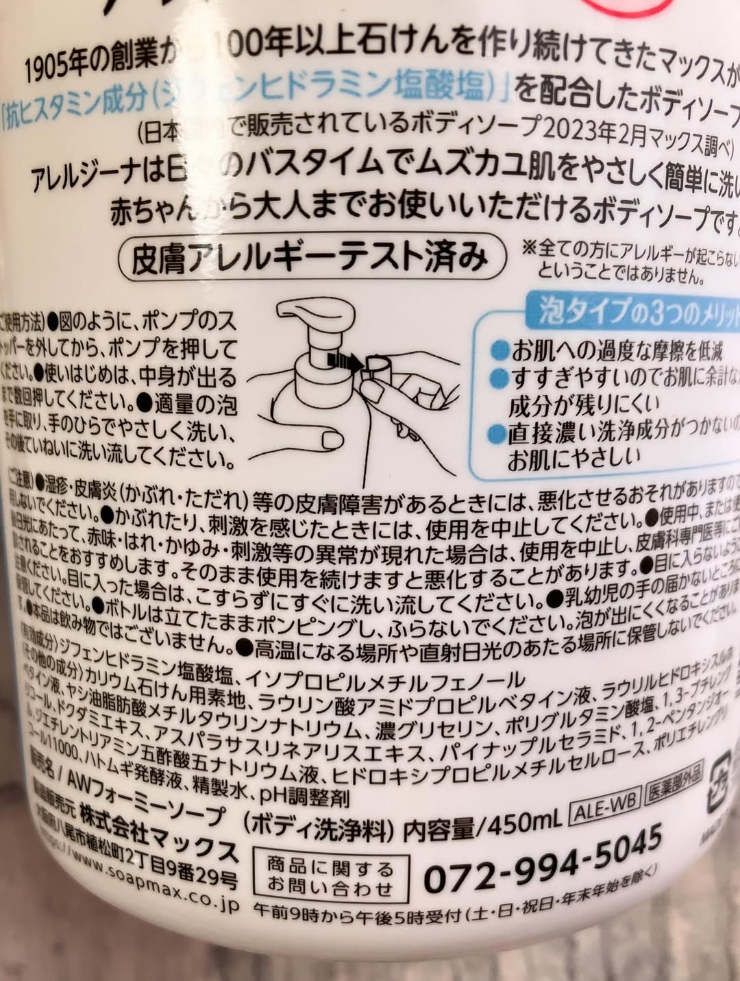 #PR #株式会社マックス #抗ヒスタミン #抗ヒスタミン成分配合 #抗ヒスタミン成分配合ボディソープ #アレルジーナ #ボディソープ #泡ボディソープ #薬用ボディソープ #ムズカユ肌 #敏感肌 #乾燥肌 #ボディケア #ジフェンヒドラミン塩酸塩 #マックス石鹸 #マックスコスメ #monipla #soapmax_fan