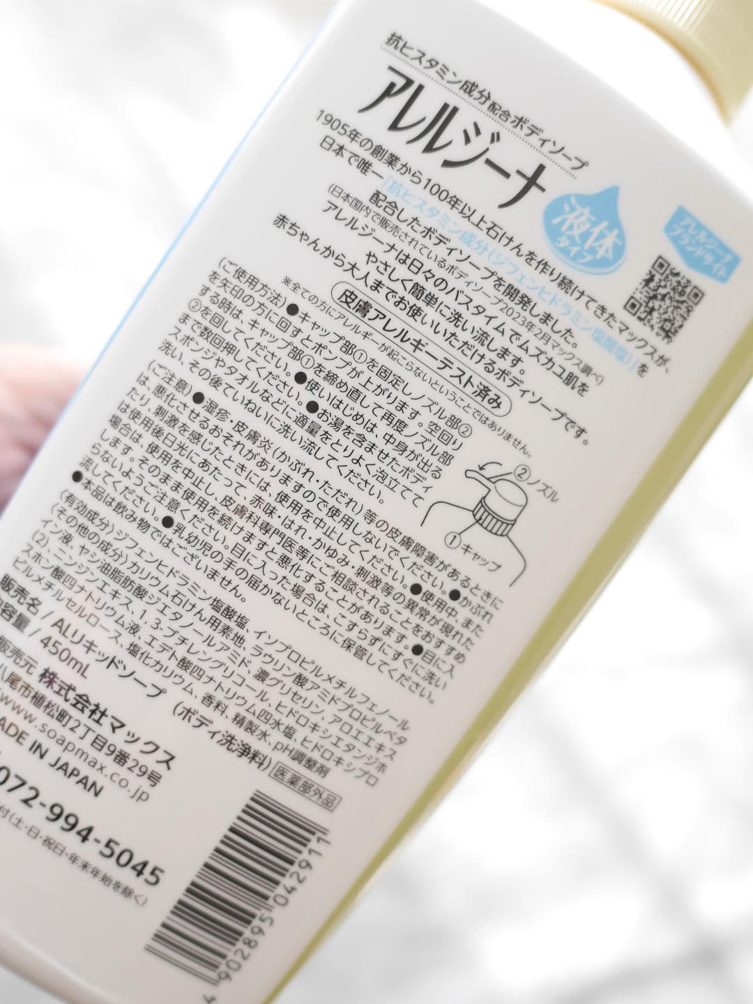 #PR #株式会社マックス #抗ヒスタミン #抗ヒスタミン成分配合 #抗ヒスタミン成分配合ボディソープ #アレルジーナ #ボディソープ #薬用ボディソープ #ムズカユ肌 #敏感肌 #乾燥肌 #ボディケア #ジフェンヒドラミン塩酸塩 #マックス石鹸 #マックスコスメ #monipla #soapmax_fan