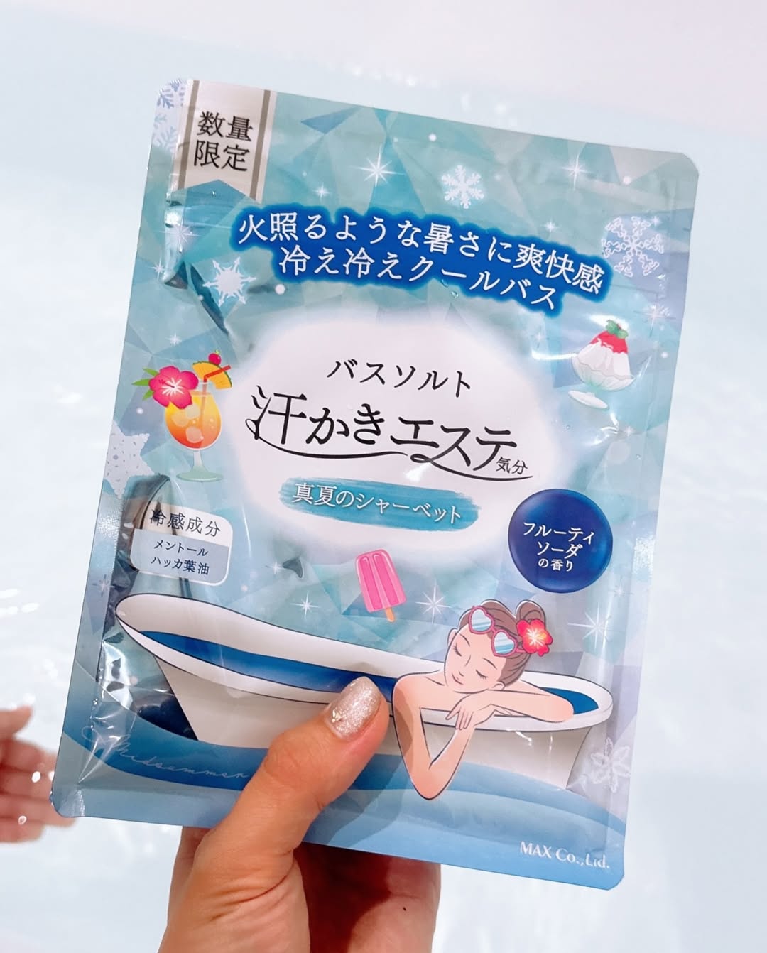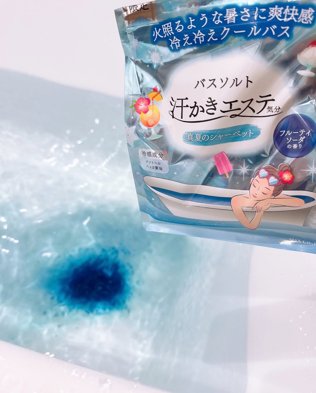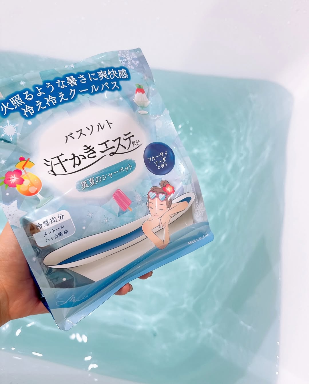 ✿ 🛀夏の火照ったカラダに、冷え冷えクールを🛀 @maxcosme1905 汗かきエステ気分 真夏のシャーベット 大人気の ~汗かきエステ気分~シリーズから 新作が出たよー!!! もぅパケからして 真夏を吹っ飛ばしてくれそうな予感🫶 冷感成分であるメントールとハッカ葉油を 配合してるんだって!! この冷感成分が少しずつ溶け出し、 長時間冷感持続するらしいー☀️ 開けた瞬間からスーッとする香りが⛄️ フルーティソーダの香り️🩵 入れて混ぜると 爽やかなオーシャンブルーの色に!!! まさに 真夏のシャーベット🍧(笑) 38℃前後のぬるめがオススメらしく 入ってる間というより、 お風呂上がりの方が スッキリ爽快感~️🩵 (個人差があります) 子どもたちも この色と珍しい感覚に すっごく喜んでいたよー!! 数量限定!! 気になる方はチェックしてみてね️🙂 #PR #株式会社マックス #汗かきエステ気分 #汗かきエステ #バスソルト #入浴剤 #シャーベット #クール #バスタイム #お風呂グッズ #マックス石鹸 #マックスコスメ #真夏のシャーベット #熱中症対策 #汗かき #お風呂好き #おうち #メントール #ハッカ #爽やか仕上がり #クールバス #monipla #soapmax_fan