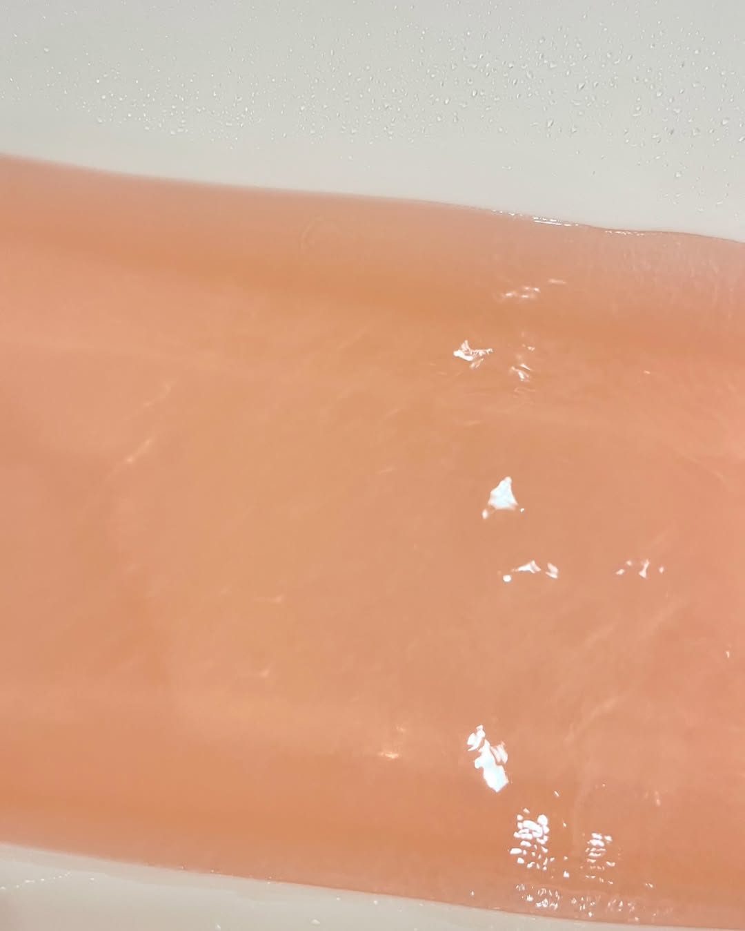 コーラルっぽいカラーのお風呂が可愛くて気分上がる🌹