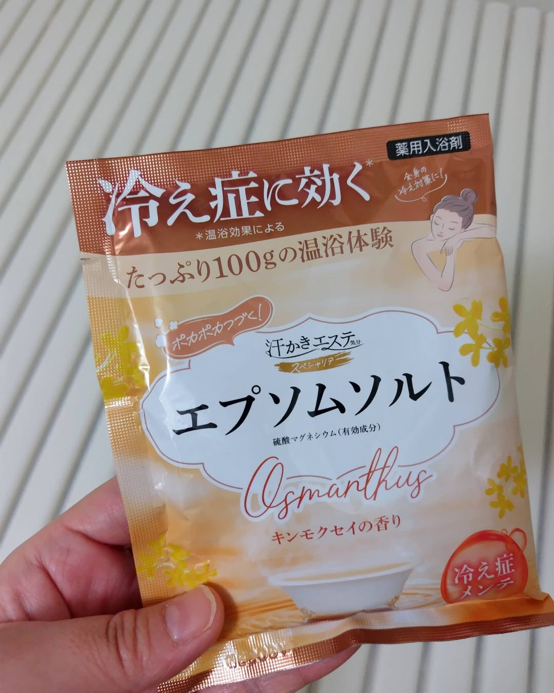 . 「汗かきエステ気分 スペシャリテ エプソムソルト分包(ロゼパチュリ・キンモクセイ)」をモニターしています。 急激に寒くなってきて、夜お風呂に入ってホッとするのが至福のひと時になりました。 このエプソムソルトは有効成分硫酸マグネシウム配合の薬用入浴剤で、たっぷり100g入っています。 ロゼパチュリの香りのピンクは疲れを癒したい時に、キンモクセイの香りのオレンジは体の冷えが気になる時にオススメ。 それぞれお風呂に入れるとほんのりいい香りが漂います。体がぽかぽかと温まって、お風呂から出てもしばらくは暑いくらいでした。 疲れをとるのに入浴ってやっぱり大事。せっかくならお気に入りの入浴剤を使って、さらにリラックスできたらいいですよね。 #PR #株式会社マックス #汗かきエステ気分 #汗かきエステ #入浴剤 #バスソルト #バスタイム #お風呂グッズ #エプソムソルト #ロゼパチュリ #キンモクセイ #マックス石鹸 #マックスコスメ #monipla #soapmax_fan