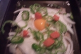 先日グラタンにしたガレットを今回は、フライパンで焼いてみることにしました 単純に卵のせて焼いてもおいしそうだけど…新玉ねぎ、ピーマンを上において焼くことにしました まず卵を割りまして 野菜をのせて ぼやぼやで、すいません 明太子があったのでそれものせてチ… 2012/06/02