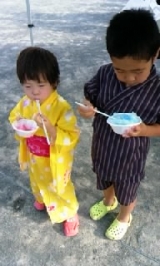 みなさま いつも応援ありがとうございます小学校の夏祭りに王子と姫と浴衣で行ってきました姫は浴衣を見るなり 大はしゃぎやっぱり姫も女の子ですね去年までは王子同様のじんべいさん(女の子用)でしたが今年は涼しかったこともあり浴衣にしてみました姫はお目当ての50円カキ氷50円綿あめ そして100円のフランク… 2013/07/24