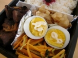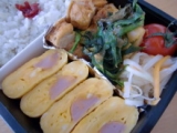 毎度温度関わらず強気に詰めこんでるお弁当 食べる前にチンしてる、という言葉を信じて来月も あぁざっくりしたオトコ弁当 卵焼きに、野菜炒め、焼き魚 何味にしたか遠い記憶の彼方のチャーハン 久々HBパン、鶏肉、ナムル、卵焼き ムスコと半分コのゆで… 2010/06/30