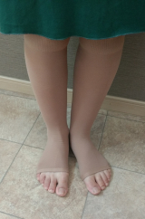 やや圧の強いタイプです。一般的な医療用弾性ストッキングに比べて(当社比)、圧迫圧の強さの割りに履きやすいことが特徴です。