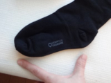 見た目は普通の靴下とほとんど変わらず、医療用に見えません。 血流を阻害しないよう履き口のバンド部分の幅が広く、バンド部分にも勾配圧迫設計が施され、締め付けを与えないよう工夫されています。