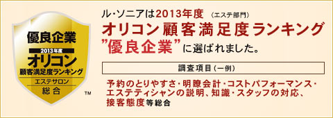 ル・ソニアは、脱毛・ブライダルエステ・フェイシャル・痩身等を行なうトータルエステティックサロンです。首都圏を中心に全国に店舗を展開。また、オリコン顧客満足度ランキング2013(エステ部門)で【優良企業】に選ばれました。