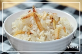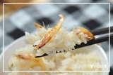 炊き上がった桜えびご飯の風味は格別で、口いっぱいに香りが広がる。素干しタイプなので特有のカリカリ感も楽しめる。