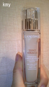 ランコムのファンデーション TEINT MIRACLE (タンミラク)のご紹介 このリキッドは、昨年、多くの美容雑誌で、優秀賞に輝いた商品 ランコムが10年かけた至極の一品! 肌の表面からだけでなく、肌内部からの光により、 美しい素肌美を再現するというのがコンセプト なの 2011/10/08