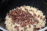 小豆の茹で汁を使って炊いた芽ぐみ米に、茹でた小豆を入れた所です。