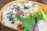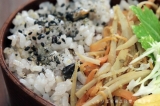 若布や菜っ葉などを入れた混ぜご飯にしています。