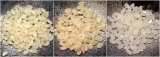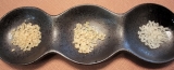 左端が玄米(山形産つや姫)、真ん中が芽ぐみ米、右端が白米(島根産仁多米)です。