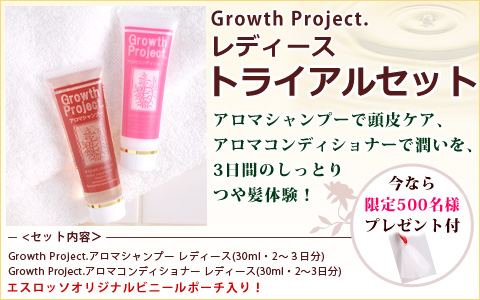 Growth Project.(グロースプロジェクト)アロマシャンプーをはじめ髪と頭皮のことを第一に考えたヘアケア商品をお取り扱いしております。商品のモニター募集や座談会を予定しております。みなさんと楽しくヘアケアについて交流できるファンサイトを目指しています!