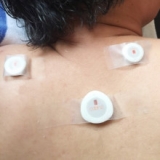 痛みを感じる部位に、親機を貼り、2~4cm離した