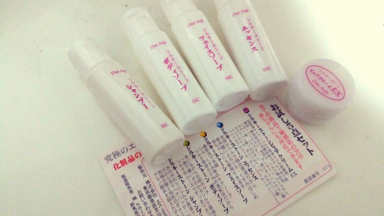 シルクというと布のイメージが強く、化粧品のイメージは全く無かったので、どのような商品なのか気になります。今回はシャンプー、ボディソープ、フェイスソープ、エッセンス、ピュアクリームEXの5点をお試しさせていただきました。