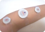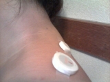 痛みを感じる部位に、親機を貼り、2~4cm離した