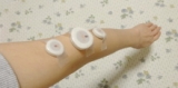 痛みを感じる部位に、親機を貼り、2~4cm離した