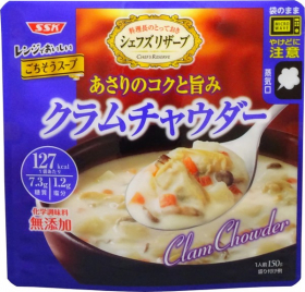本格ごちそうスープです!袋のまま電子レンジで温められます。あさりと野菜、きのこをたっぷり使用した食べごたえのあるスープです。スープのベースにもあさりの旨みとコクをしっかり効かせ、クリーミーに仕上げました。化学調味料無添加です。
