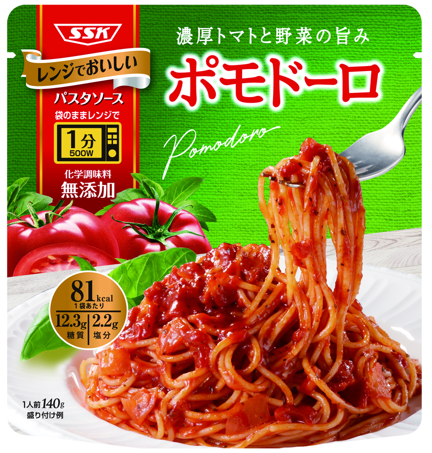 袋のまま電子レンジで約1分温めるだけ!トマトを贅沢に使用し、旨味、甘み、酸味を効かせた、コクのあるパスタソースです。化学調味料無添加。