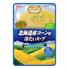 甘みと風味の強い北海道産スーパースイートコーンを限定使用しています。生クリームの豊かなコク・風味を生かし、なめらかなスープに仕上げました。本格レストランの味をお楽しみいただける冷たいスープです。化学調味料無添加です。