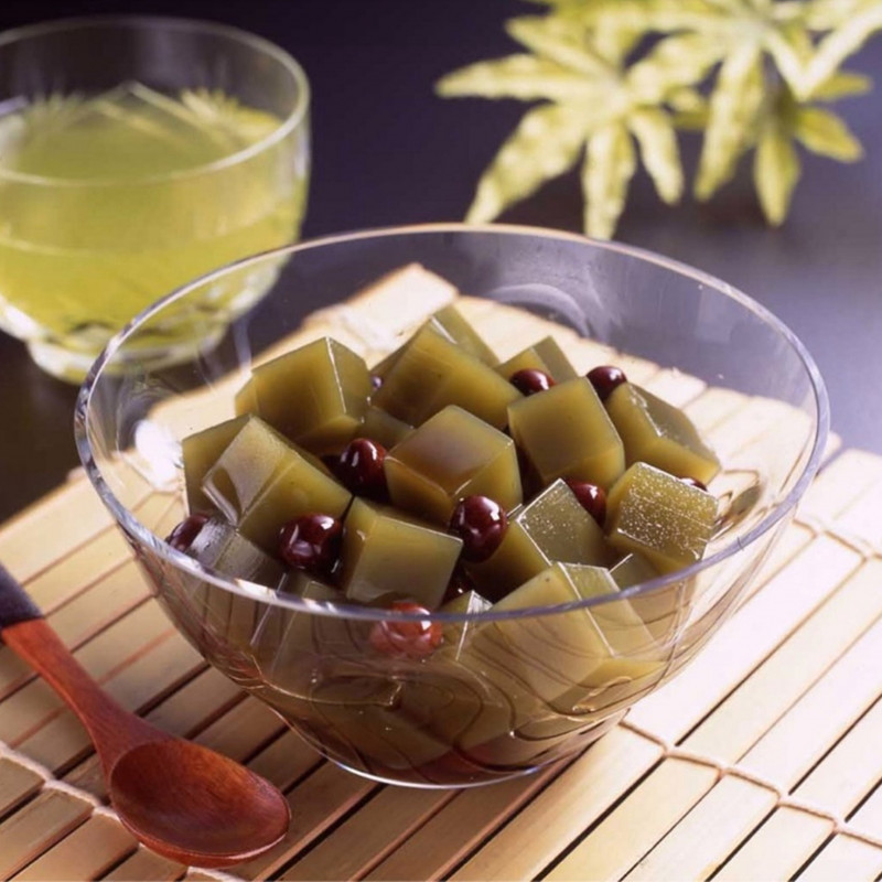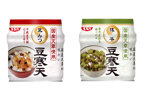 黒みつ豆寒天、抹茶豆寒天の2種類をお届けします。