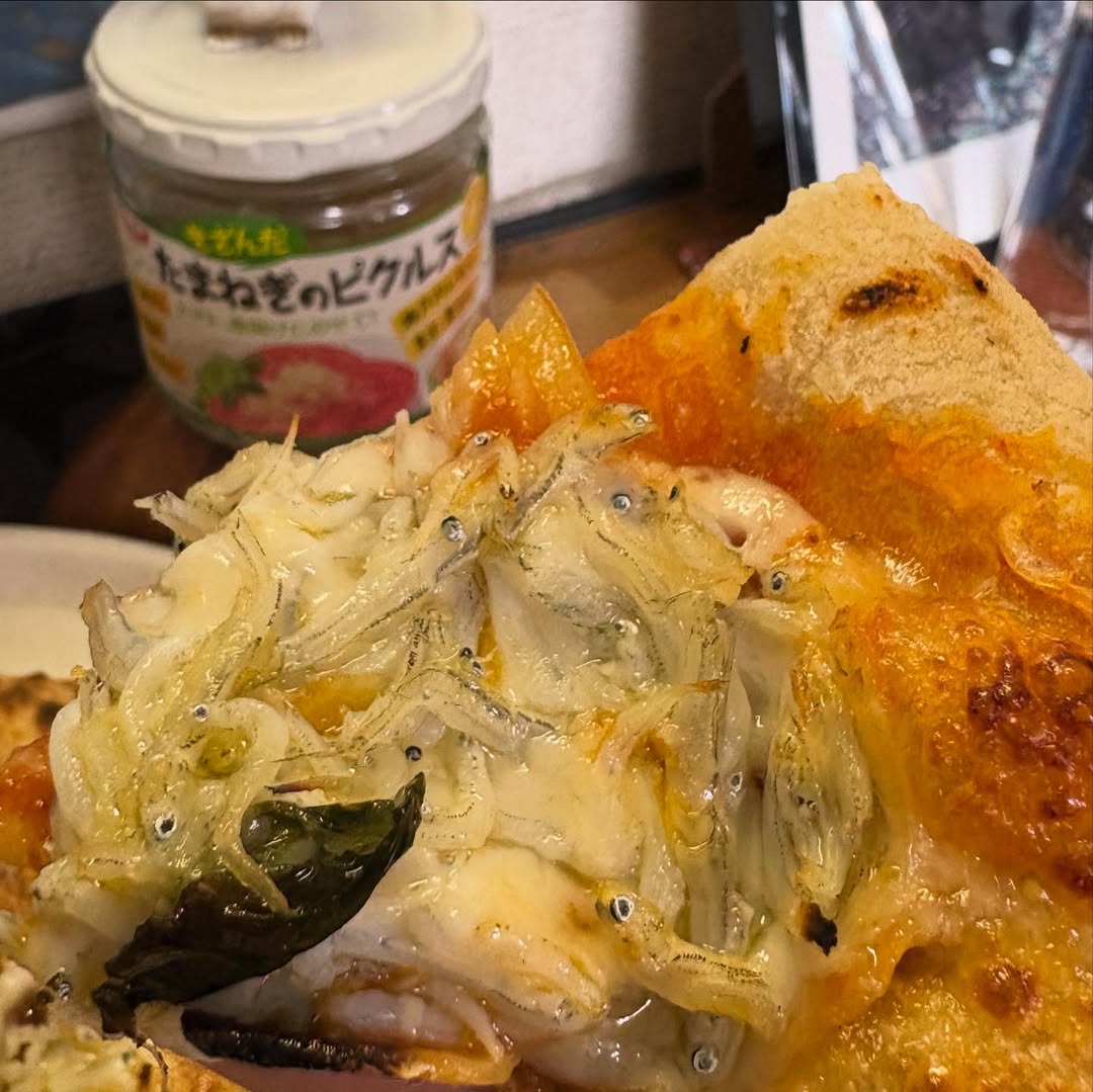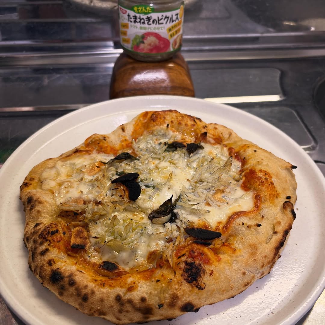20251024 只今🍕 #ピザ 修行中🍕 🟫今回は 伊名🐟チチニエリ😋和名シラス🐟 彼の国では 転じてチチニエリと言えばピザも含めて〜それを使った料理も指すらしい〜 前々回、和風でシラスをやらかした際 予習するなかで チチニエリをチラ見して 次回は🤓コレだと🟫 🟥生地は 冷蔵庫で3日熟成〜というか 寝かせたもの🟥 🟨小麦粉:カプート〜🟨 🟪今回のソース 無塩🍅ジュース100g 🌟きざんだ🧅のピクルス15g🌟🍅ケチャップ20g🌟チューブ🧄5g🌟胡椒〜乾燥バジルとオレガノ〜各ふたふり🌟を70gチョイ迄煮詰めた。火をとめてヒトナメシテ👍思った通り🧅のピクルスがイイ仕事にしてくれました😋 玉子焼に始まった🧅のピクルスとのお付き合い 色々な料理で試して予定通り〜ゴールに辿り着いた模様。🟪 🟦焼き ビジュアルが致命傷なのはサテオキ 一昨日の和物と違って やっぱりピザの基本は🍅ソース系だねぇ〜シラスの塩味と相まって🤩美味かった。肉系をトッピングするよりもサカナ系の方が自分の味覚には合っている🦆。さて、今回提供頂いた『きざんだ🧅のピクルス』で色々と美味しく遊ばせて貰いました。関係各位へ 心から🙇♂️感謝申しあげます。ご馳走様でした。あらためて清水食品HPを拝見していて #サババジルジェノベーゼ風 を発見 サバ🟰🐟 ジャン🥳コレで🍕焼いてみたい❣️と 思いましたが...我が北国では残念ながら...近所のスーパーでは見かけません。週末の買い物で おっ😋あったあった❗️と、気軽に連れて帰れる日が遠からず訪れますよう〜に祈っております。🥳よろしくです。🟦 以上、😋 な〜に言ってんだかな 独り言。 #高忠ピザ #今日のピザ #ピザ作り修行中 #ピザ作り #手作りピザ #ピザ大好き #電気式釜焼マスター #家電ピザ窯 #enro #PR #清水食品 #SSK #きざんだピクルス #きざんだたまねぎのピクルス #ピクルス #monipla #ssk_fan