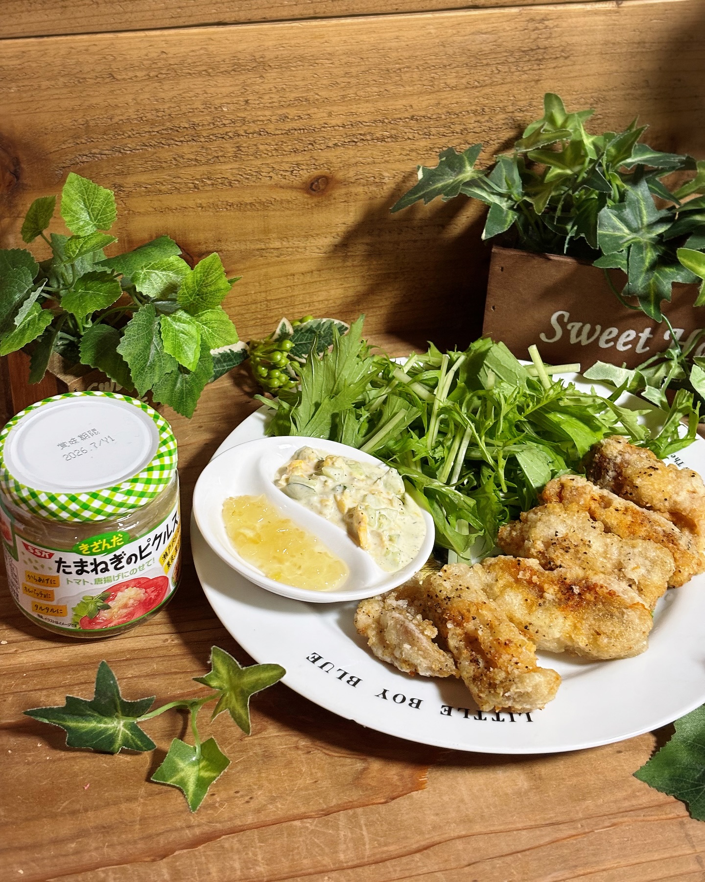 揚げ物もサラダも美味しく変身♪ 清水食品さんの、きざんだ玉ねぎのピクルス(瀬戸内レモン入り)にハマってます💗 このピクルスには玉ねぎにレモンの果汁と果皮が加わっていて、爽やかな香りと程よい甘酸っぱさが特徴。 単体で食べても美味しいし、色々な料理に合わせやすいのが嬉しいポイントです✌ わが家では先ず、玉ねぎのピクルスとゆで卵にキュウリをマヨネーズと混ぜてタルタルソース風に♪ 他の調味料はオリーブオイルと塩胡椒を少し加えたくらいなんだけど、まろやかなコクとピクルスの爽やかさが絶妙にマッチ💞 揚げ物やチキンソテーにかけたら格別の美味しさでした😍 特に、から揚げ風のチキンソテーと合わせるのが一番好きだった~ 油っぽさやしつこさが軽くなり、肉の旨味がピクルスの甘酸っぱさで引き立つ感じ。 単体で玉ねぎピクルスだけを付けて食べても、ほんのりした甘みと酸味をしっかりと楽しめます😋 味の主張が強すぎず、奥ゆかしい美味しさを出しつつも料理全体のバランスを邪魔しないので サラダやサンドイッチなど、いろんなメニューに気軽に取り入れられるのも嬉しい魅力ポイントですね👍 本当どんな料理にも合わせやすいので、これがあれば毎日の料理がぐっと便利になりそう♪ 毎日の食卓にさりげなく活躍する重宝アイテム、常備しておきたい万能ピクルスかもです🥰 #PR #清水食品 #SSK #きざんだピクルス #きざんだたまねぎのピクルス #ピクルス #monipla #ssk_fan