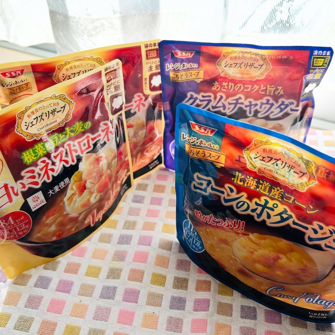 #清水食品 様より ✨シェフズリザーブ レンジでおいしいごちそうスープ✨をいただきました😊 3種類の秋冬の新商品になります⛄️ ⭐️根菜と豆と大麦の白いミネストローネ ⭐️北海道産コーンのポタージュ ⭐️あさりのコクと旨みクラムチャウダー 【根菜と豆と大麦の白いミネストローネ】 トマトでなくブイヨンベースの白いミネストローネ。 根菜・豆・大麦の9種の具材が入った贅沢なスープになります。 1食84キロカロリーと低カロリーなのに、具がたっぷり、豆も大きく食べ応えがあり 予想以上に満腹感がありました💓 【北海道コーンのポタージュ】 濃厚でコーンたっぷりのポタージュです。 優しい甘さが最高で、今まで飲んだコーンポタージュの中で1番の美味しさでした😋 【あさりのコクと旨みクラムチャウダー】 あさりと野菜、きのこをたっぷり使用したクラムチャウダーです。 予想以上に濃厚で、バターとあさりの旨みが最高です。パンとサラダを用意すれば立派な夕飯になりました👏✨ 3食のお供にはもちろん 夜食やおやつにも小腹が満たされオススメです🥰 #PR #清水食品 #SSK #スープ #レンジ調理 #具沢山 #ごちそう #モニプラPR #monipla #ssk_fan