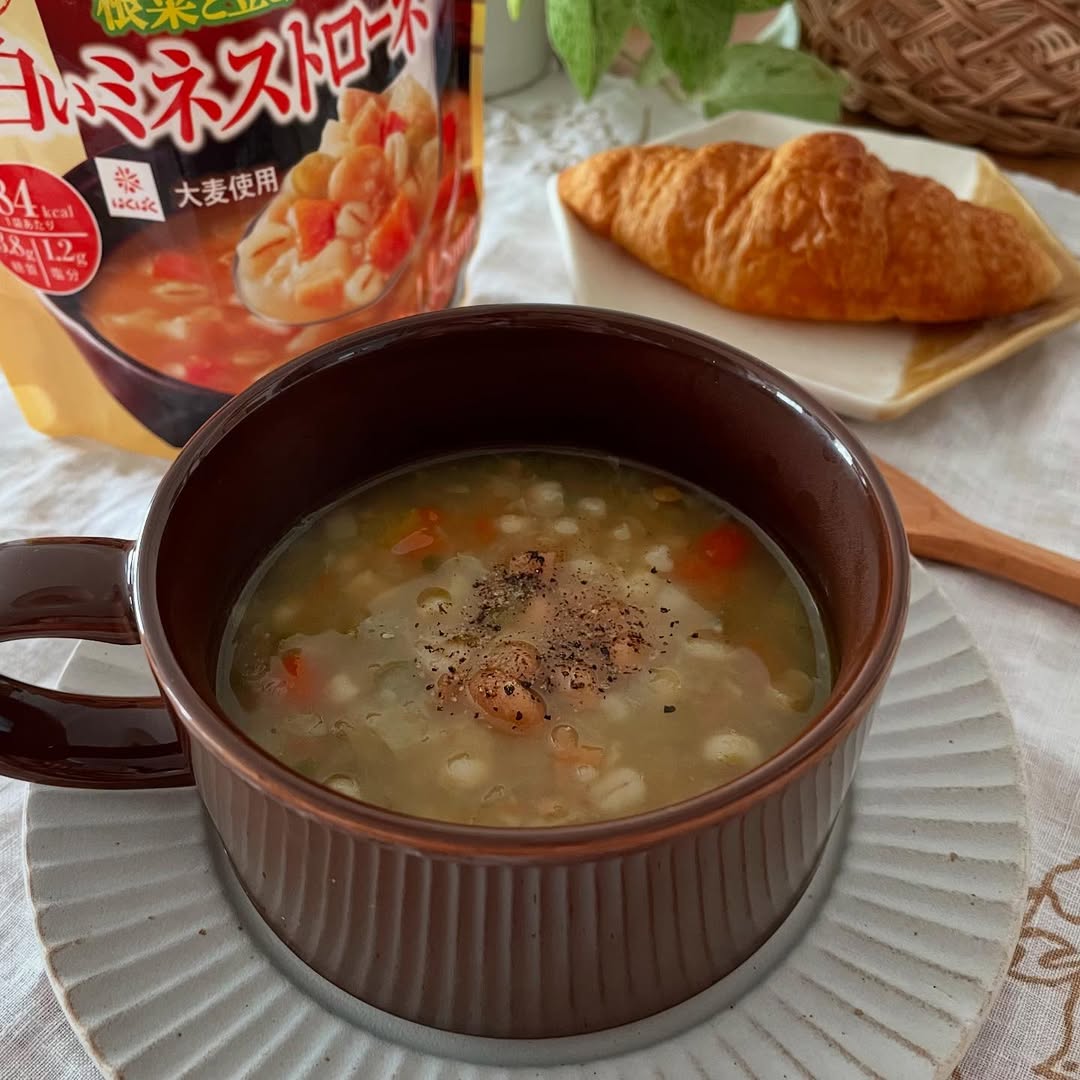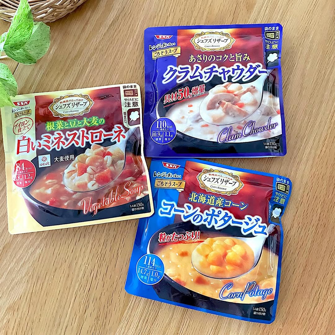 モニプラファンブログより SSK清水食品様のレンジでごちそうスープ3品をお試しさせていただきました☺️ 袋のまま電子レンジで温められて 手軽で本格的なスープのシリーズです! それぞれのお味のレビューです🌱 ☆白いミネストローネ 内容量の約3分の2が具材! 野菜、豆、大麦など9種類使われています ブイヨンの風味が感じられて食べ応えのあるスープでした♪ブラックペッパーをかけるとアクセントになって美味しかったです ☆コーンのポタージュ コーンは北海道産で風味豊かです! シャキシャキコーンが美味しくて甘くホッとする美味しさでした♪ ☆クラムチャウダー あさりとほたての旨みが効いてます! あさりとじゃがいも、きのこの具材を増量し 従来品の具材の1.5倍に増量されているので満足感ありのスープです どれも具材感があり満足できるスープです♪ 常温でストックしやすいのでぜひ手に取ってみて下さいね⭐️ #PR #清水食品 #SSK #スープ #レンジ調理 #具沢山 #ごちそう #モニプラPR #monipla #ssk_fan
