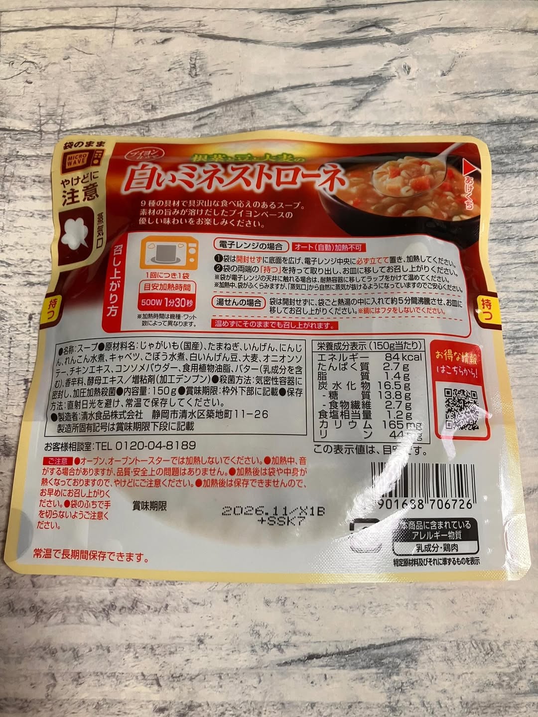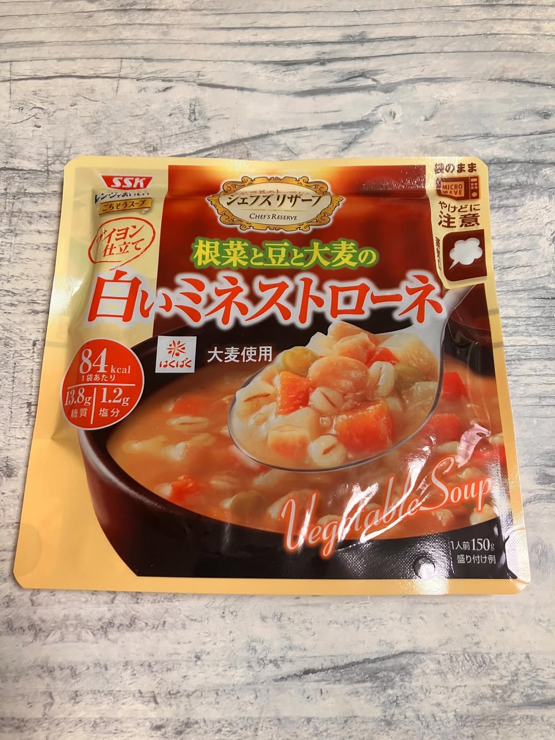 #PR #清水食品 #SSK #スープ #レンジ調理 #具沢山 #ごちそう #モニプラPR #monipla #ssk_fan 清水食品株式会社(SSK)様に商品をご提供頂き、シェフズリザーブレンジでごちそうスープの ⭐根菜と豆と大麦の白いミネストローネ ⭐北海道産コーンのポタージュ ⭐あさりのコクと旨みクラムチャウダー をお試しさせていただきました。 何よりも手軽でいいなぁと思うのが 袋ごとレンチンするだけで食べられるところです。 袋を立てて置き、500Wで1分半レンジでチンするだけ。 気楽! 中でも今回試した中で一番気に入ったのが白いミネストローネです。 とまとを使っていない珍しい白いミネストローネ。 具材がたっぷり入っていて、私の好きな豆や大麦がはいっているので、腹持ちも良くて満足感がありました。 具材は9種類も入っているそうです。贅沢ですね! 味付けもブイヨン仕立てになっていて、豊かな味わいでした。 特に昼過ぎに一人でいるとつい簡単に済ませがちなのですが、これをストックしておけば一人のご飯も1品簡単に増やせて幸せな気持ちになるなって思いました。