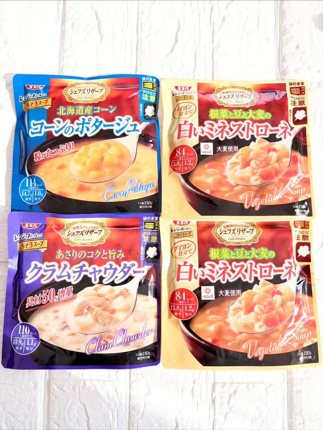 🍲 レンジで約1分!ごちそうスープ3品✨ シェフズリザーブの「レンジでごちそうスープ」シリーズをお試ししました🍽️ ・根菜と豆と大麦の白いミネストローネ ・北海道産コーンのポタージュ ・あさりのコクと旨みクラムチャウダー どれもレンジでチンするだけで、まるでお店のような味わい😍 具材がしっかり入っていて、ランチにも夜食にもぴったりです♪これから寒くなるから手軽にスープが飲めて最高すぎます❣️ 常温保存OKだから、ストックしておくと忙しい日にも助かります🙆♀️ #PR #清水食品 #SSK #スープ #レンジ調理 #具沢山 #ごちそう #モニプラPR #monipla #ssk_fan