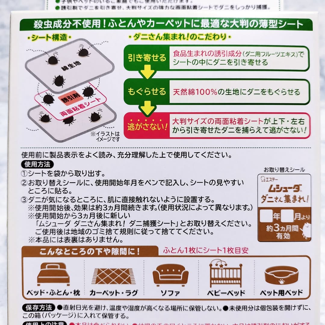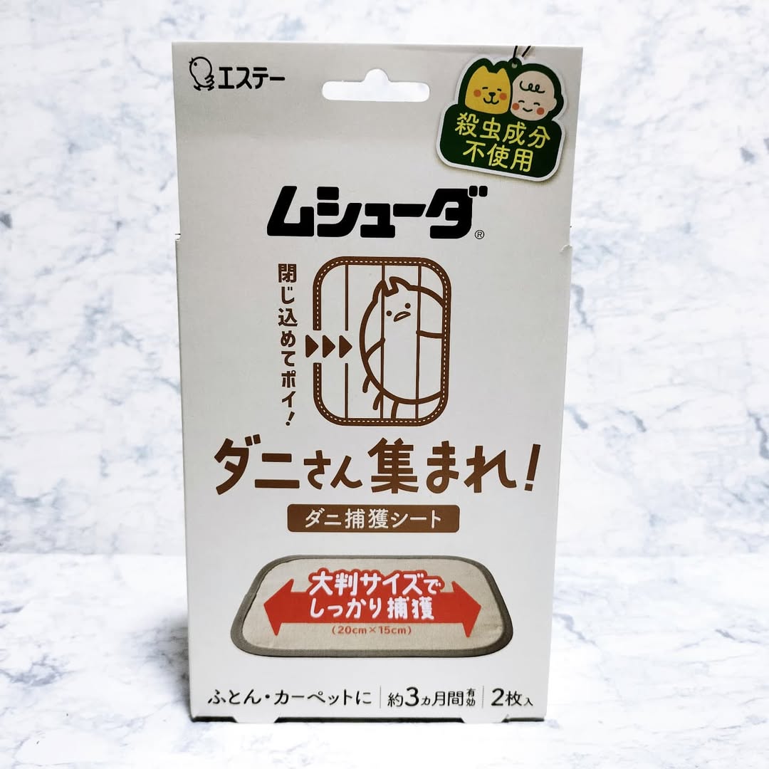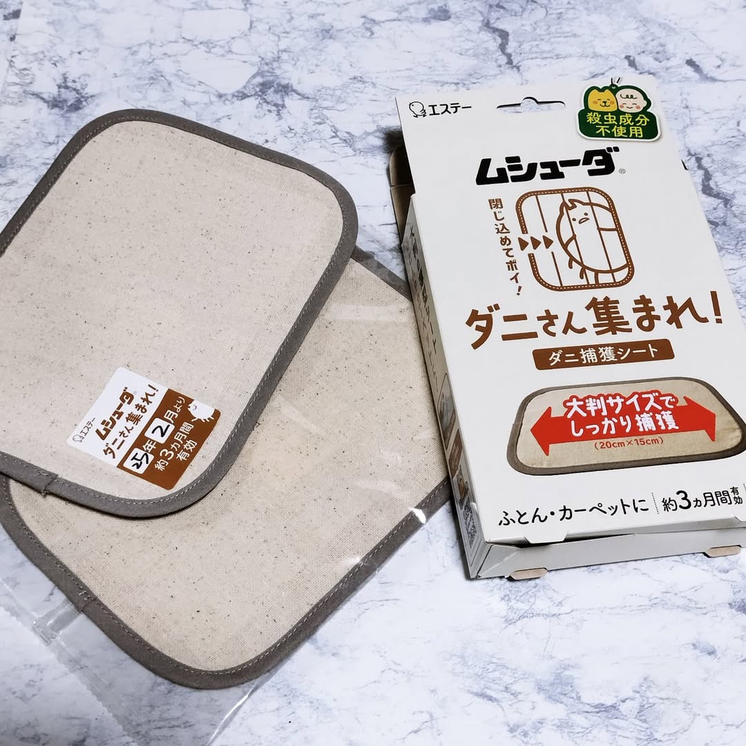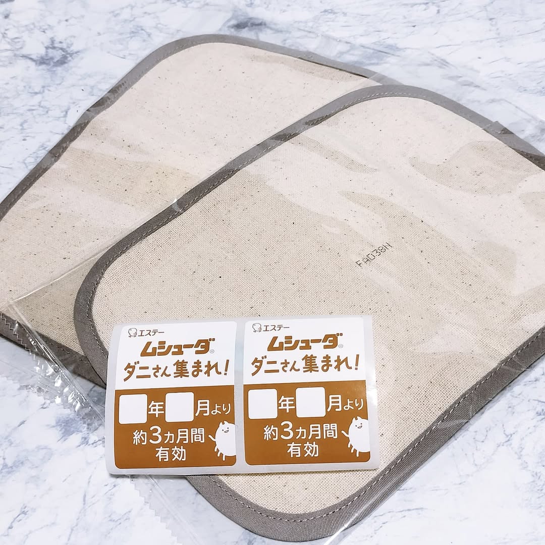 エステー ムシューダ ダニさん集まれ! ダニ捕獲シート ダニが気になる場所に置くだけで簡単ダニ対策ができるシートです。 殺虫成分不使用だから、子供やペットがいるおうちでも安心して使えます。 食品生まれの誘引剤でダニを引き寄せ、大判サイズの強力な両面粘着シートでダニをしっかり捕獲❣️ ダニのフンや死骸もまとめて、シートごと捨てることができて便利👆 我が家もワンコと一緒に生活しているので、 早速、お布団の下とワンコのベッドの下に置いてみました。 効果は約3ヵ月間👍 お取り替えシールがついてるから 交換時期もわかりやすくてバッチリ🤗 #PR #エステー #ムシューダ #ダニさん集まれ #ダニ対策 #ダニ #ダニ捕獲シート #monipla #st_fan