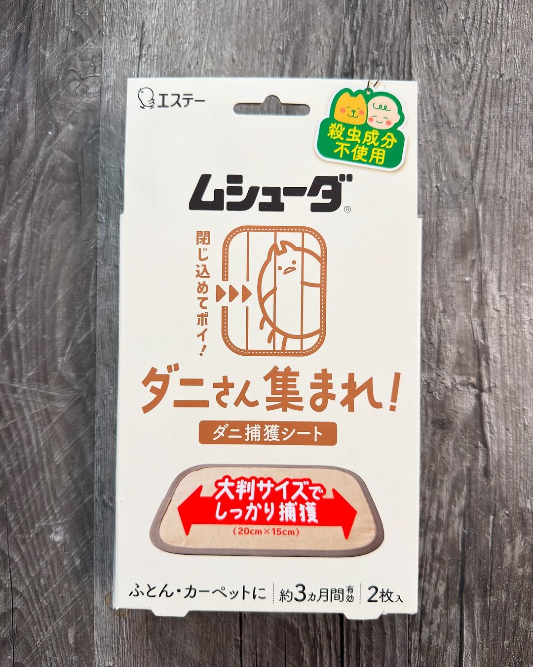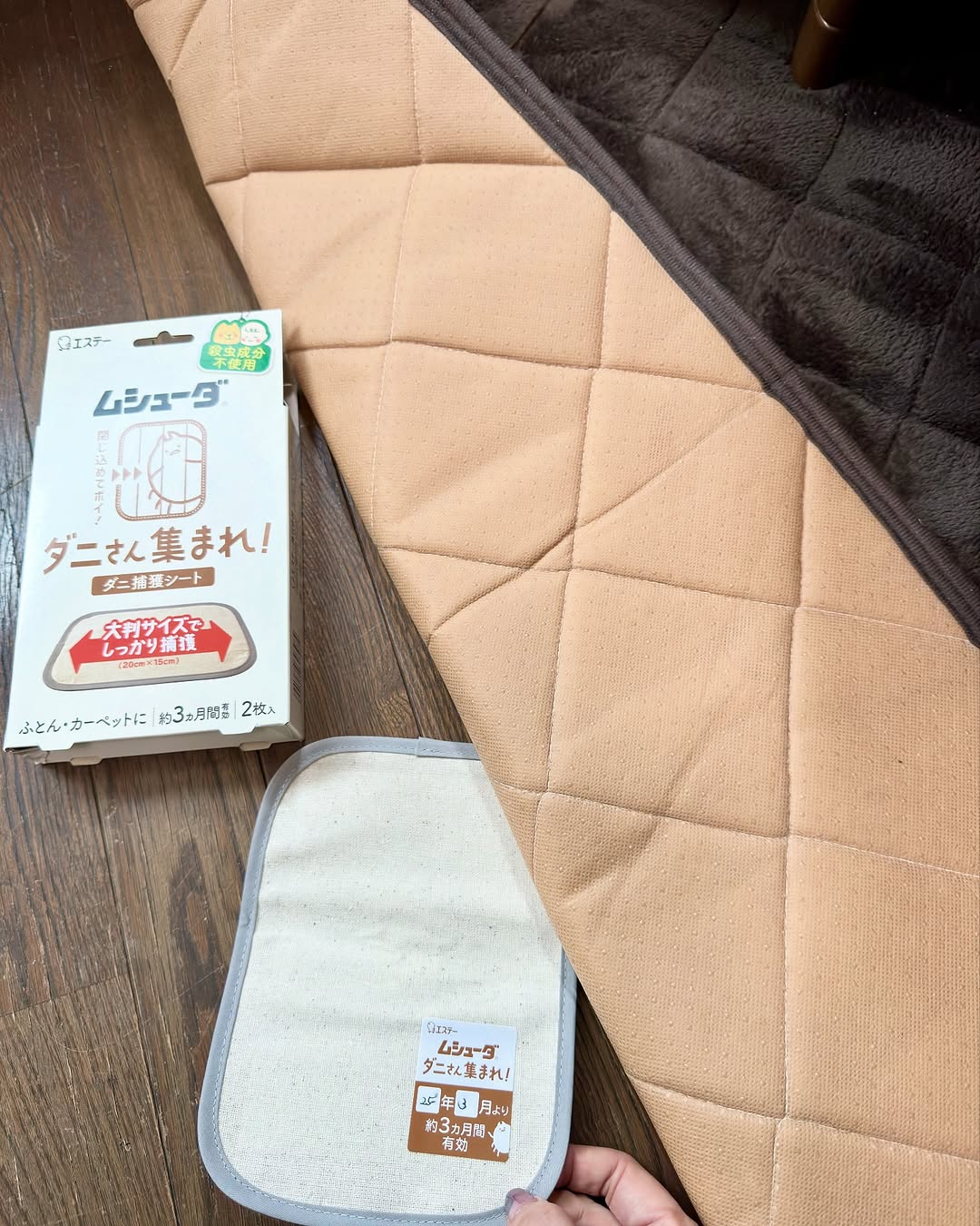 普段目に見えないけど常に気になるダニ。 きっと我が家にもたくさんいるのだろうけれど、 エビ水槽があるので、殺虫剤を使うのも不安だし、なかなか対策できないでいました。 そこで今回、「ムシューダ ダニさん集まれ! ダニ捕獲シート」を使ってみることに。 食品生まれの誘引成分でダニを引き寄せ、両面粘着シートで捕獲する仕組みで、使い終わったらそのままポイっと捨てるだけ。 殺虫成分不使用だから気になる薬品臭などもナシ。 1箱2枚入りをお布団に1枚、リビングのカーペットに1枚使ってみました。 薄いシート状で、大判でもお布団やカーペットの下に敷いても厚みが気にならないし、しっかりした素材なのでヨレたりしないのが良かったです! 効果は3ヶ月。使い始めの日にちが書けるシールも付いてるので取り替え時期がすぐわかるところも⭕️ 効果が楽しみだな☺️ #PR #エステー #ムシューダ #ダニさん集まれ #ダニ対策 #ダニ #ダニ捕獲シート #monipla #st_fan