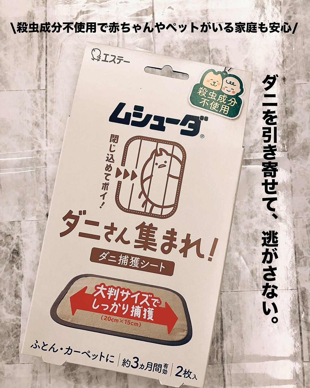 . . . . 1歳の男の子ママ👩in愛知 グルメ、おでかけ、おすすめを紹介 薄毛がトレードマークの息子くんもよろしくね👶 @kumatan2325 . . ダニが心配だけど どんな対策をしたらいいのかわからない🤦♀️ . . . そんな方におすすめなのが ムシューダ様の「ダニ捕獲シート」 . . 大判サイズのシートが ダニを集めて逃がさない! 3ヶ月経過したら ダニを捕獲したシートごと捨てるだけなので簡単♪ . . 殺虫成分不使用なので 赤ちゃんやペットがいる家庭でも安心して使えるのが とっても嬉しい🥹 . . 注意するのはシートを直接肌に触れないように 入れるだけ!! だから我が家はベットの敷パットの下に入れてるよ . . . 寝具だけじゃなく、カーペットやソファなど 気になるところにはどこにでも使えるので とっても使い勝手が良いの💓 . . お家のダニが気になる方! ぜひ使ってみませんか??☺️ . . . . . . . . . #PR #エステー #ムシューダ #ダニさん集まれ #ダニ対策 #ダニ #ダニ捕獲シート #monipla #st_fan
