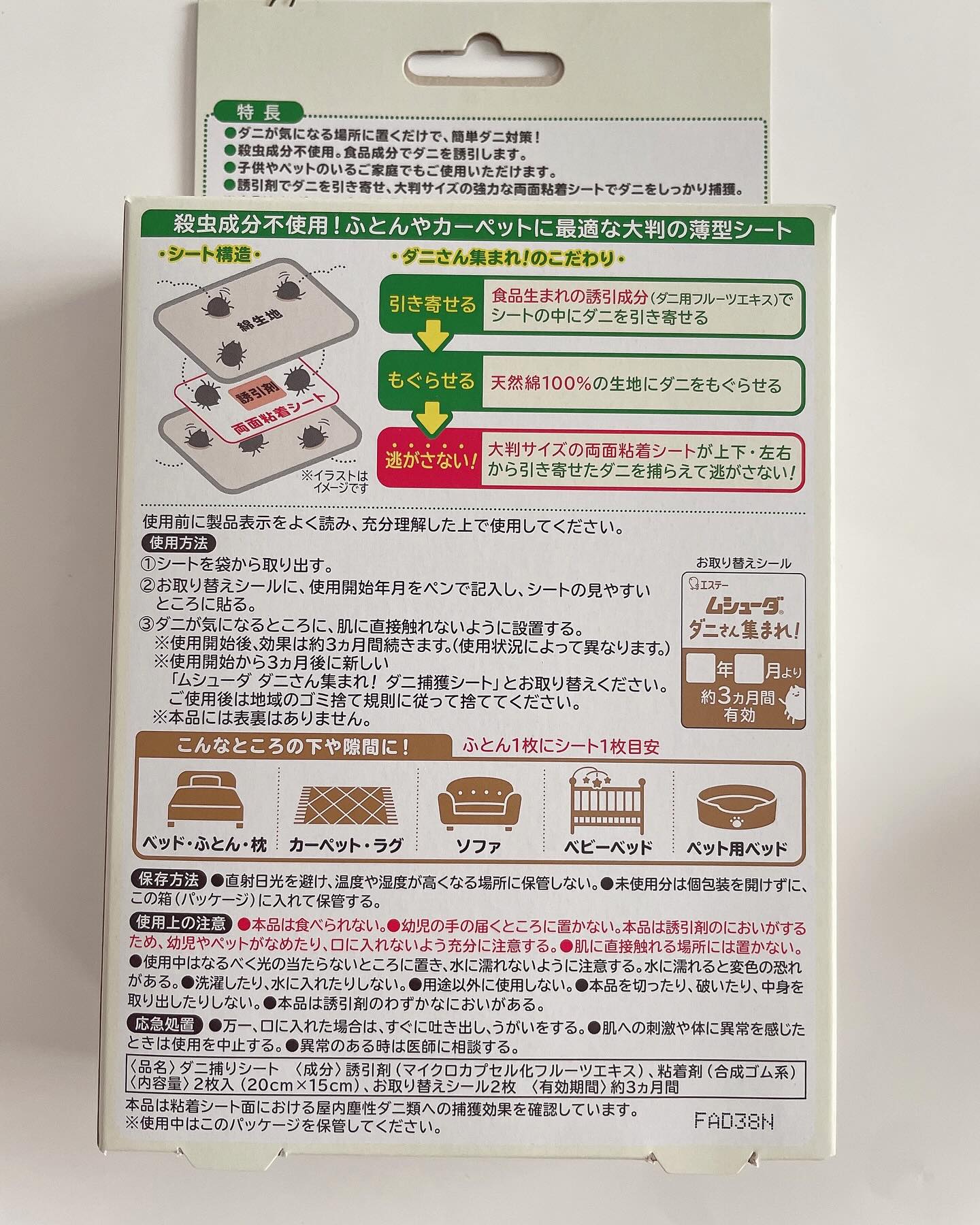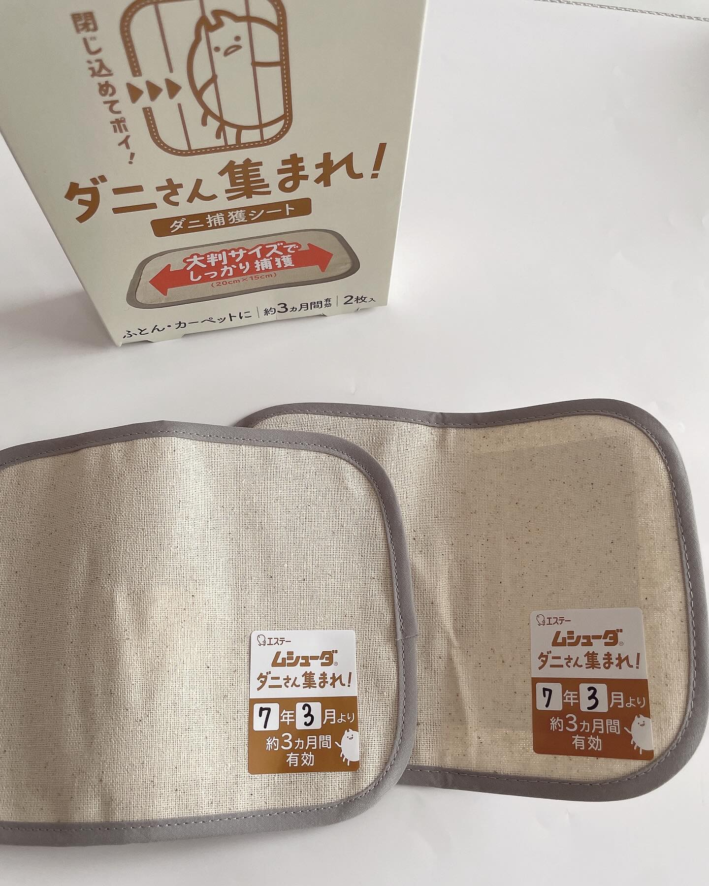 ☆。.:*・゜ エステー 様の【ムシューダ ダニさん集まれ! ダニ捕獲シート】のご紹介です!! ダニって、目に見えないから、コワイですよね。 ダニの死骸や糞がアレルギーの症状を悪化させます💧➰ 私の子供もアレルギー持ちなので、掃除など気をつけていますが……布団や枕、カーペットやラグ、ソファなどには絶対と言っていいほどいるけど、掃除機だけじゃだめだし。。 でも!!この商品を知ってからは!!なんだか安心できています💓 殺虫成分不使用の大判捕護シート ●ダニが気になる場所に置くだけで、簡単ダニ対策! ●殺虫成分不使用。食品成分でダニを誘引します。 ●子供やペットのいるご家庭でもご使用いただけます。 ●誘引剤でダニを引き寄せ、大判サイズの強力な両面粘着シートでダニをしっかり捕獲。 ※本品はイエダニ・マダニを対象としたものではありません。 ●ダニのフンや死骸もまとめて、シートごと捨てることができます。 ●使いやすい個別包装タイプです。 個包装を開けると、食品生まれの誘引成分(ダニ用フルーツエキス)⇽結構匂いしました!! 私はソファに置いたのですが、設置後は匂いが気になりませんでした!! シートの中にダニを引き寄せ、天然綿100%の生地にダニを潜らせ、大判シートの両面粘着シートが上下左右から引き寄せたダニを捕らえて逃さないのです!!!!︎🌟𖤐 ̖́-凄すぎ!!!! 3ヶ月使用出来るのもGood👍✨ オススメです!!☝🏻 ̖́- #PR #エステー #ムシューダ #ダニさん集まれ #ダニ対策 #ダニ #ダニ捕獲シート #monipla #st_fan