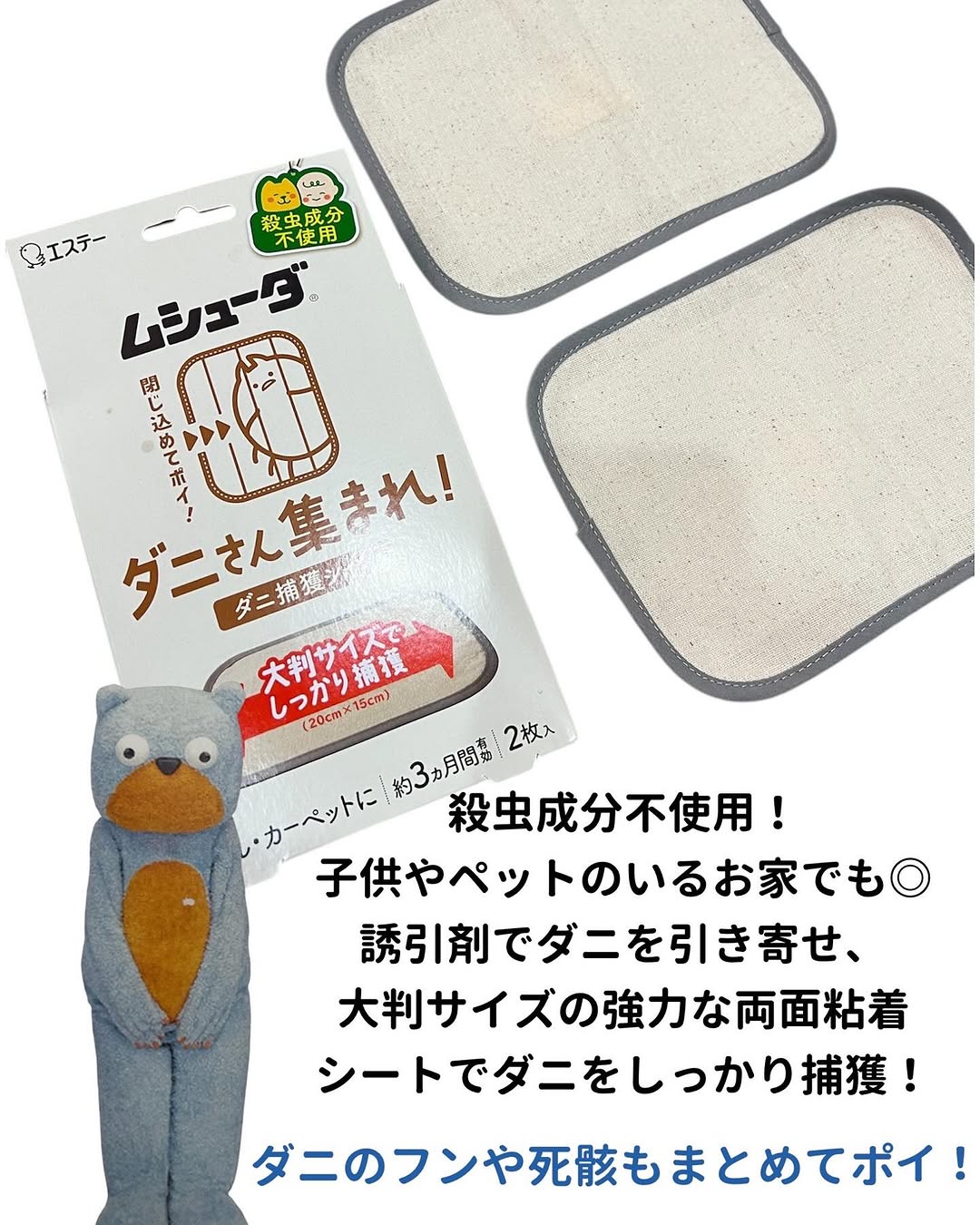 . . これからの時期から多くなるダニ対策!✨ . ……………………………………………………… ムシューダ ダニさん集まれ!ダニ捕獲シート ……………………………………………………… . 大判サイズ(20cm×15cm)で少ない枚数で しっかり捕獲してくれるのが嬉しい☺️ . 薄い生地で絨毯の下に敷いても響きにくいのが良かった😍 . 殺虫成分不使用! 食品成分でダニを誘引するから 小さいお子さんやペットがいる家庭でも使えるよ🙆♀️✨ . . #PR #エステー #ムシューダ #ダニさん集まれ #ダニ対策 #ダニ #ダニ捕獲シート #monipla #st_fan
