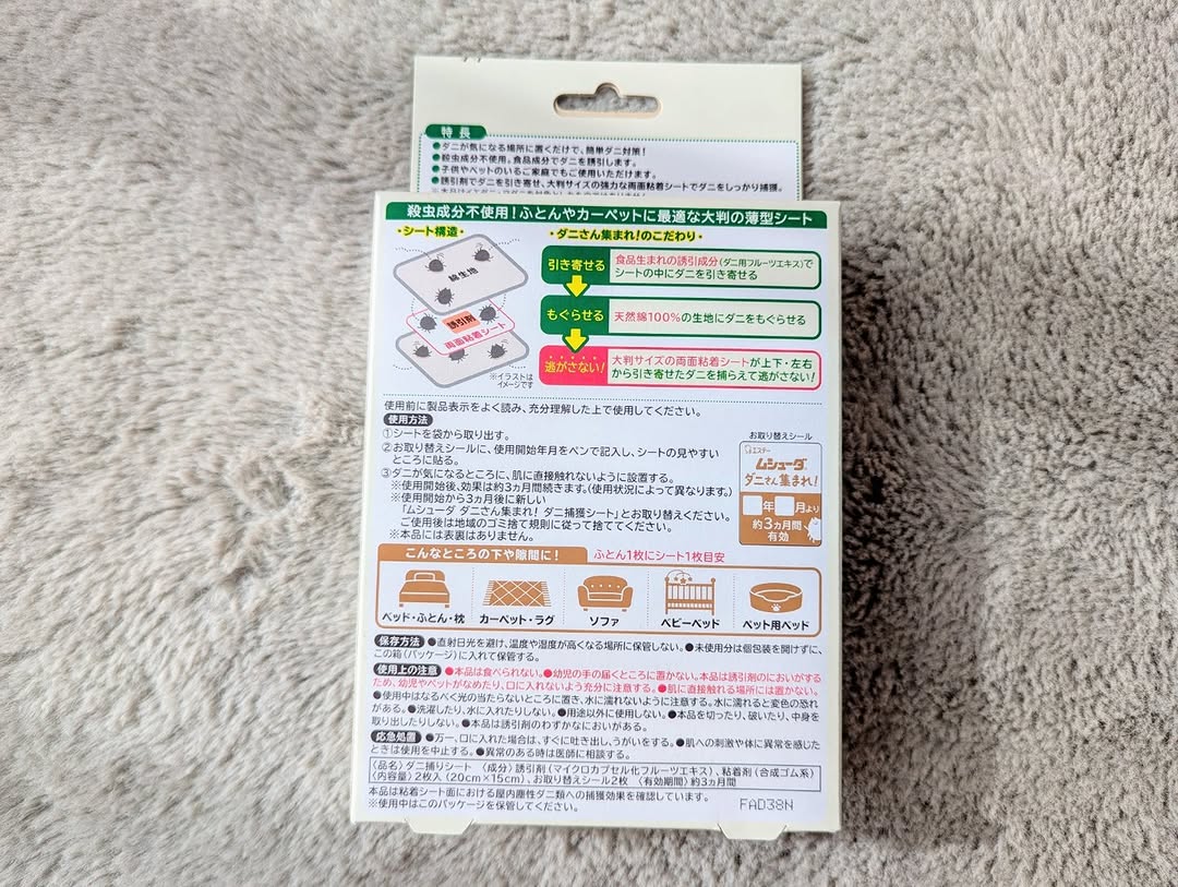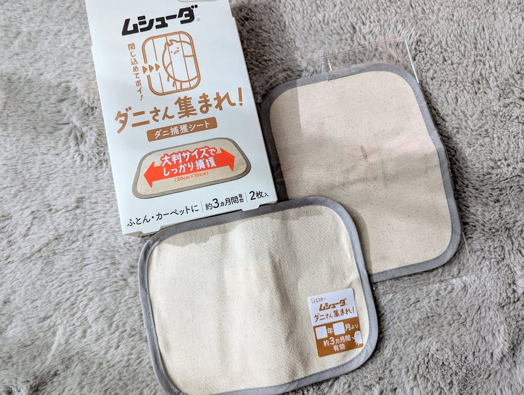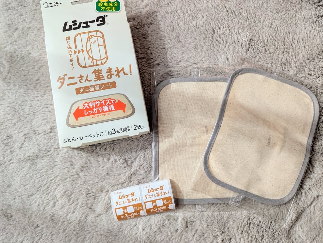 . エステー様 \ムシューダ ダニさん集まれ! ダニ捕獲シート/ 〈殺虫成分不使用〉 赤ちゃんが生まれた我が家。 気になるのはダニ🥲 目に見えないから厄介ですよね。 こちらのダニ捕獲シートは置くだけ簡単! ダニの死骸やフンもまとめてシートごと捨てられます。 食品成分でダニを誘引してくれるので 1ヶ月の子供がいる我が家でも安心して使えます💓 カーペットの下に置いています。 3ヶ月もつんだそう✨ 日付も書き込めるので交換時期もバッチリ! #PR #エステー #ムシューダ #ダニさん集まれ #ダニ対策 #ダニ #ダニ捕獲シート #monipla #st_fan