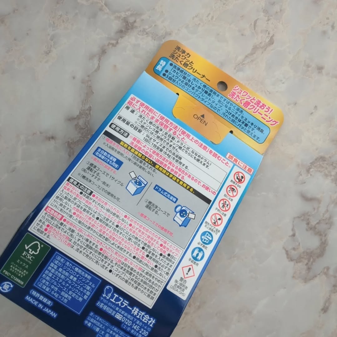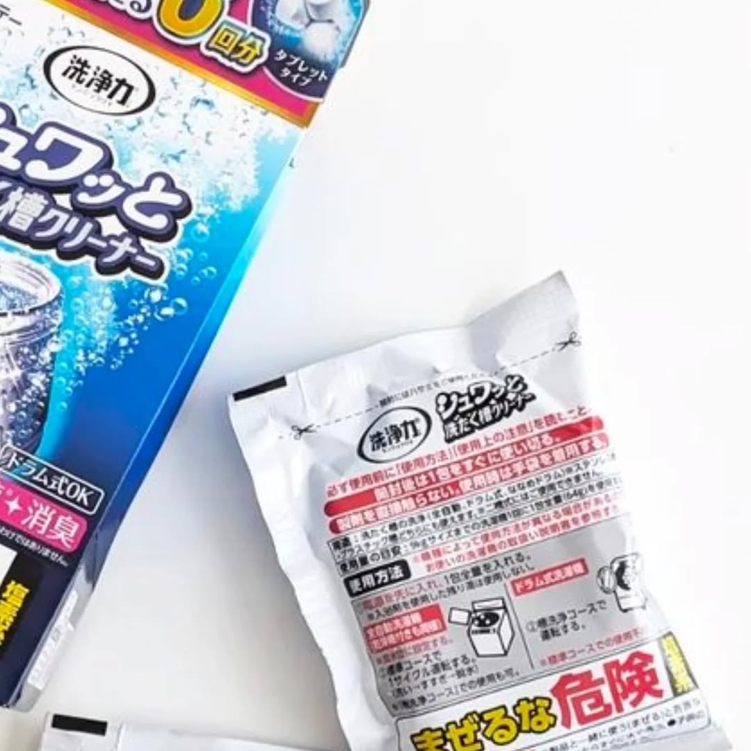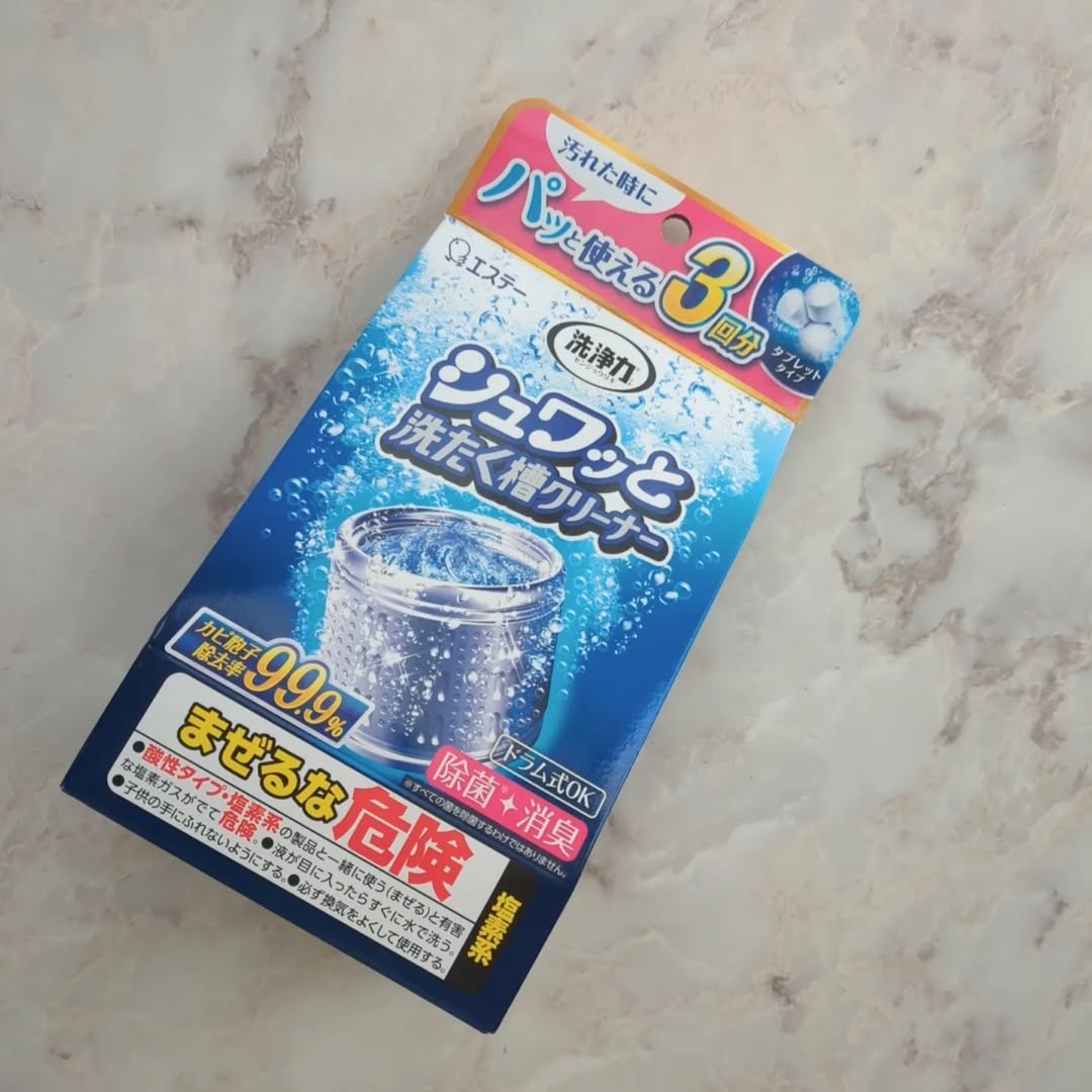 シュワッと洗おう!洗たく槽クリーニング ●洗浄成分が、洗たく槽の裏側まですばやく浸透。「カビ」「菌」をしっかり除去し、気になるニオイをスッキリ消臭。 ●シュワッと溶けるタブレットタイプ。つけおきは不要です。 ●3回分入りのコンパクトタイプなので、汚れた時にパッと使えます。