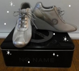 待望!!憧れのNO NAMEのお靴が我が家に届きました!サンタさんからのママへのプレゼント漣漣大好きなシルバー漣漣後ろからも素敵でしょなんだか足首細く見える?!?キラキラしてて、しかも、高ーいヒールなのに、走れる!まさに、子連れママのシンデレラ靴!!私、シルバーが好きで好きで、結婚式にもシ… 2010/12/31