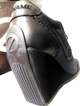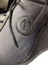 インサイドにファスナー付き、レースアップタイプの機能的なデザイン。